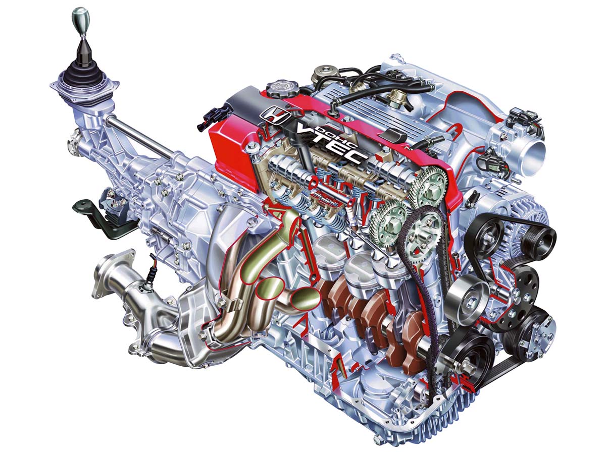 | 這具引擎已經更換上Spoon精密組裝本體,除此之外目前只有改裝鈦合金中尾段排氣管, 3000rpm左右就能感覺充沛的扭力,向上拉至VTEC開啟後更是到達另一個境界。 |
