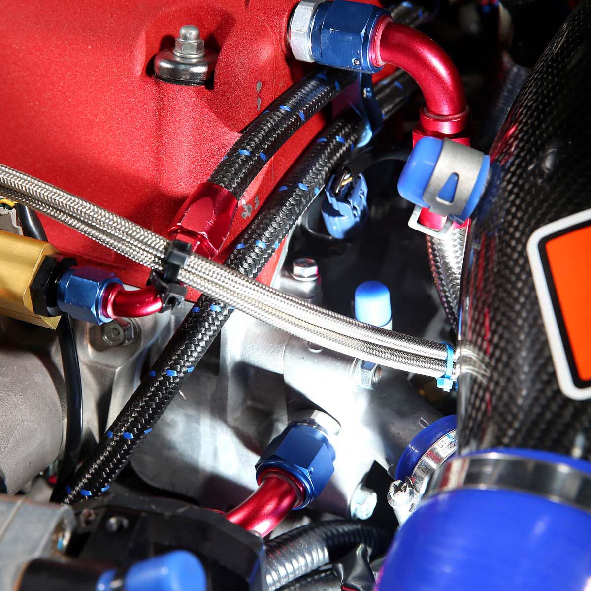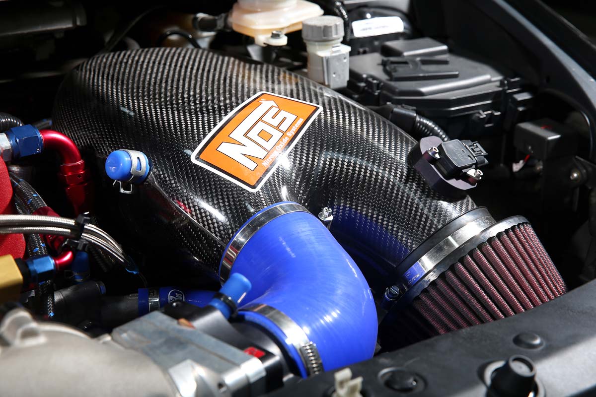 | 該車採用4個進氣歧管上各一組的設定來大幅提升動力,濕式NOS也因為搭配了汽油預混的關係,較沒有傳統乾式NOS容易回火的問題。 |