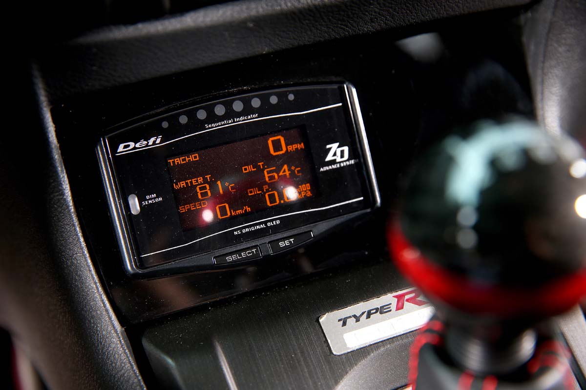 | 越來越多的車主不喜歡在車內裝太多額外的儀表,這輛FN2就是如此,僅加裝Defi ZD多功能顯示儀表來監控引擎狀態。 |