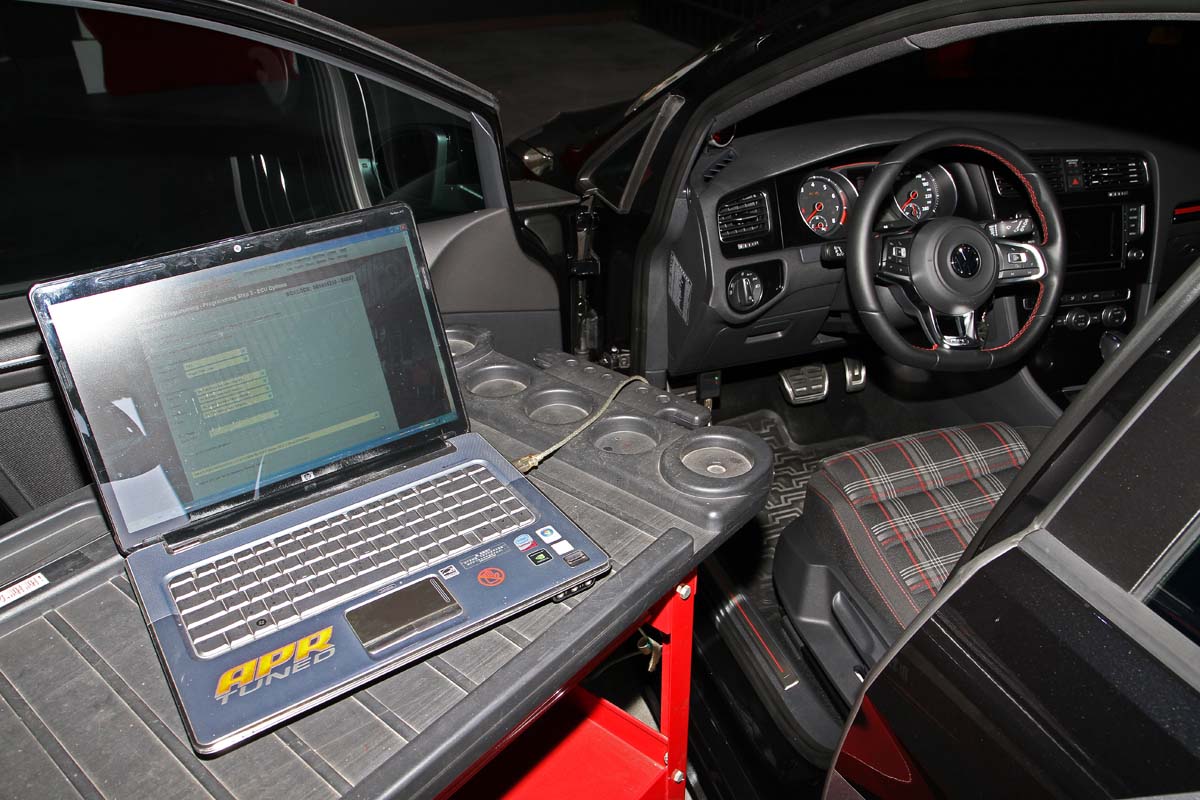 不過由於Golf GTI 7為提早因應歐盟六期環保法規的相關規定,ECU系統已從過去的Bosch改為反應速度更快的32位元西門子電腦,對於引擎相關的監控變得更為嚴格,這點從MAP訊號細膩度與引擎空燃比的控制精準度部分就可看出端倪,也因為如此使得ECU Tuning的難度提高許多。為使引擎油耗能再降低,七代GTI使用了反應速度更快的西門子32位元ECU系統,且對於空燃比的控制採用全速域皆為Open Loop的設計,也就是不管引擎在哪個轉速、油門如何踩踏,ECU隨時透過分布於引擎各處的感應Sensor的回饋訊號,來調整噴油量,在低轉速時不論油門怎麼踩,空燃比都會保持在14.8-14.6之間;進入高轉速時,巡航一樣會保持在14.7左右,不過油門一踩深開始加速時,空燃比則會進入12.5左右直到斷油,也因為對於噴油量的運算相當精準,因此七代GTI的油耗會比六代省許多,不過也因此使得ECU Tuning的難度增加不少。