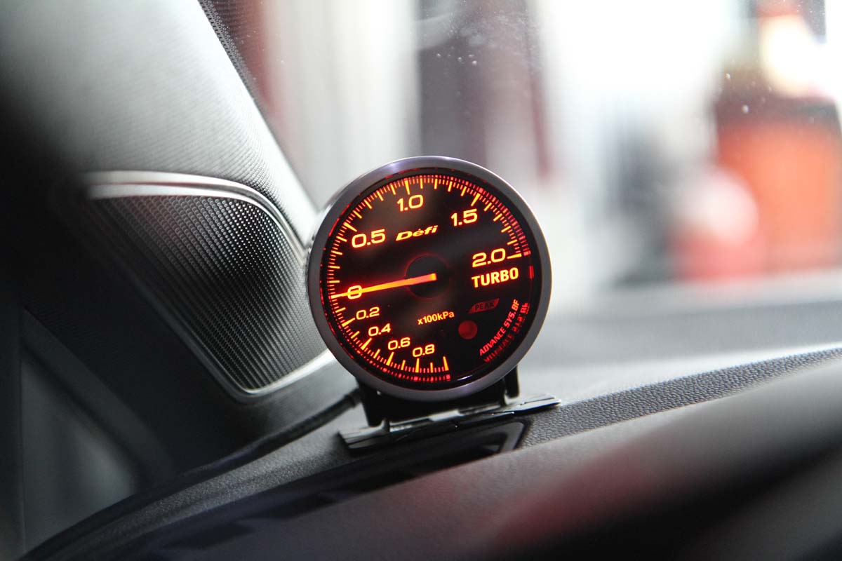 | 這部台灣APR的Demo Car,內裝保持原廠狀態,不過中控檯上有加裝渦輪錶來監控增壓狀況。 |