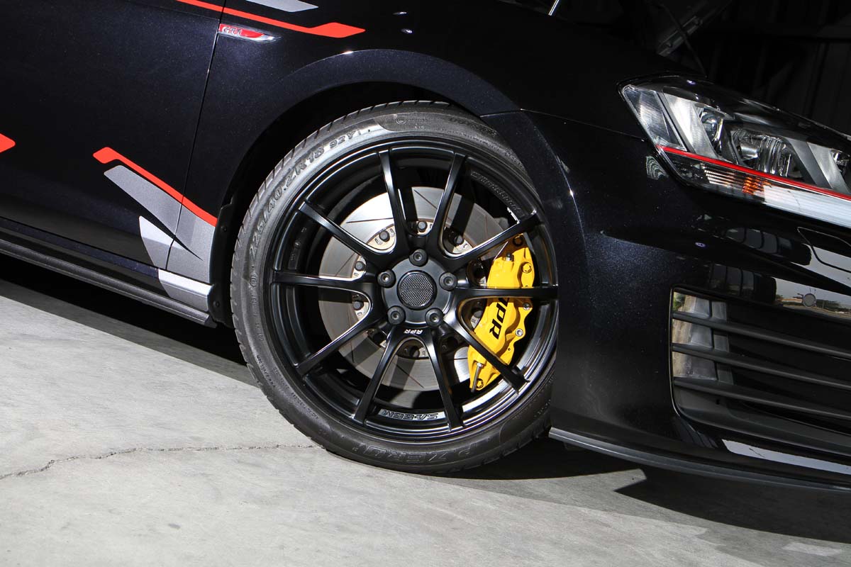| 黑色APR鋁圈搭配黃色多活塞卡鉗,使得整部車散發低調卻蓄勢待發的氣息。 |