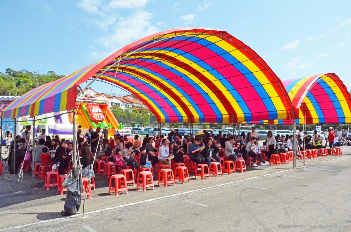 | 大型的戶外車聚雖然曬曬太陽對身體有幫助,不過貼心的主辦單位還是搭起大型遮陽帳棚讓大家能夠作為臨時休憩區。 |