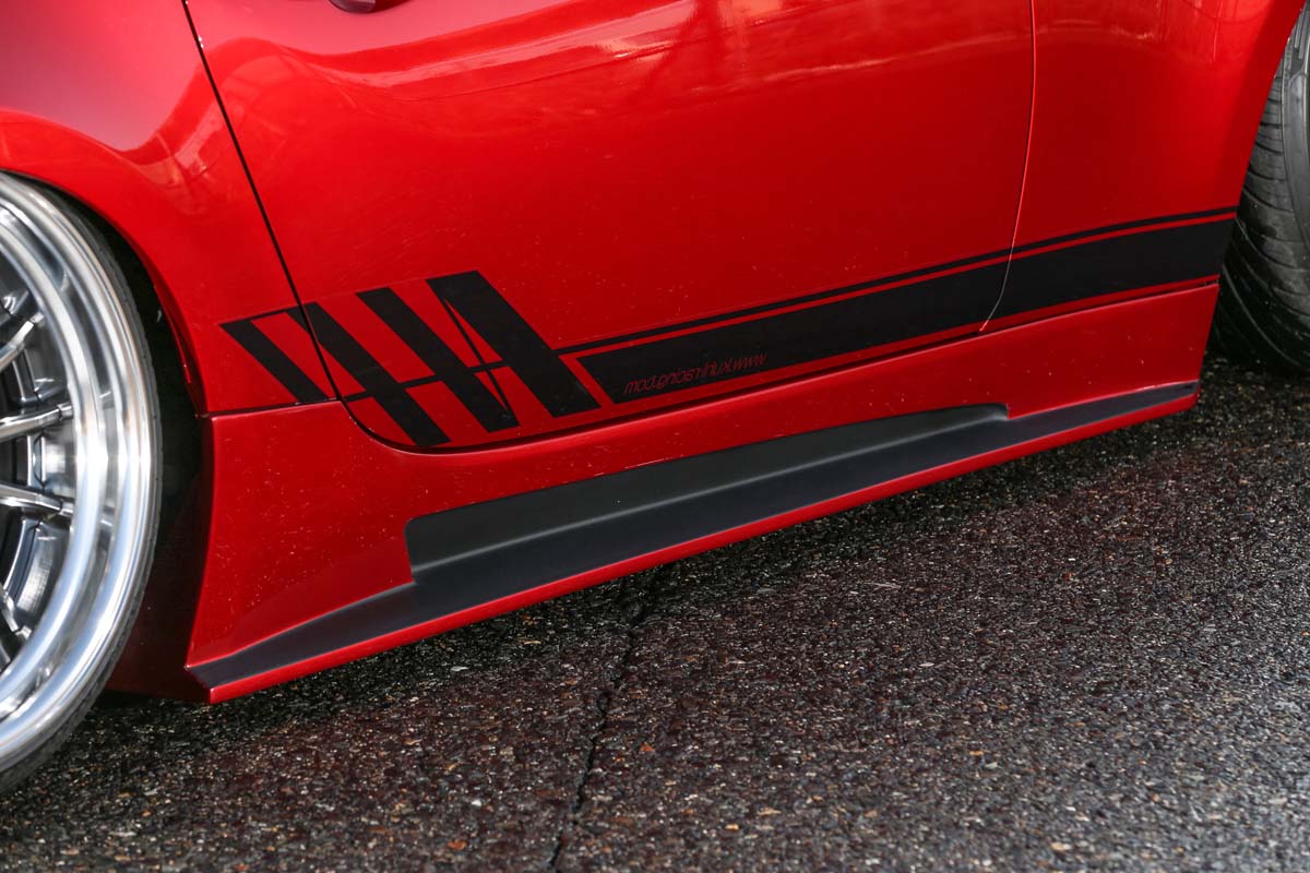 保桿部分Kuhl Racing採用大型化的開口氣壩,並且在兩側末端施以開口讓氣流通過創造更多的下壓力,並且達到了ABS材質無法比擬的高強度製造技術,創造出更立體感的車頭造型,側裙部分更是充滿了一體感的意識下所設計,與車身為全銜接並且些許向內凹的設計可讓氣流通過保持車體安定。