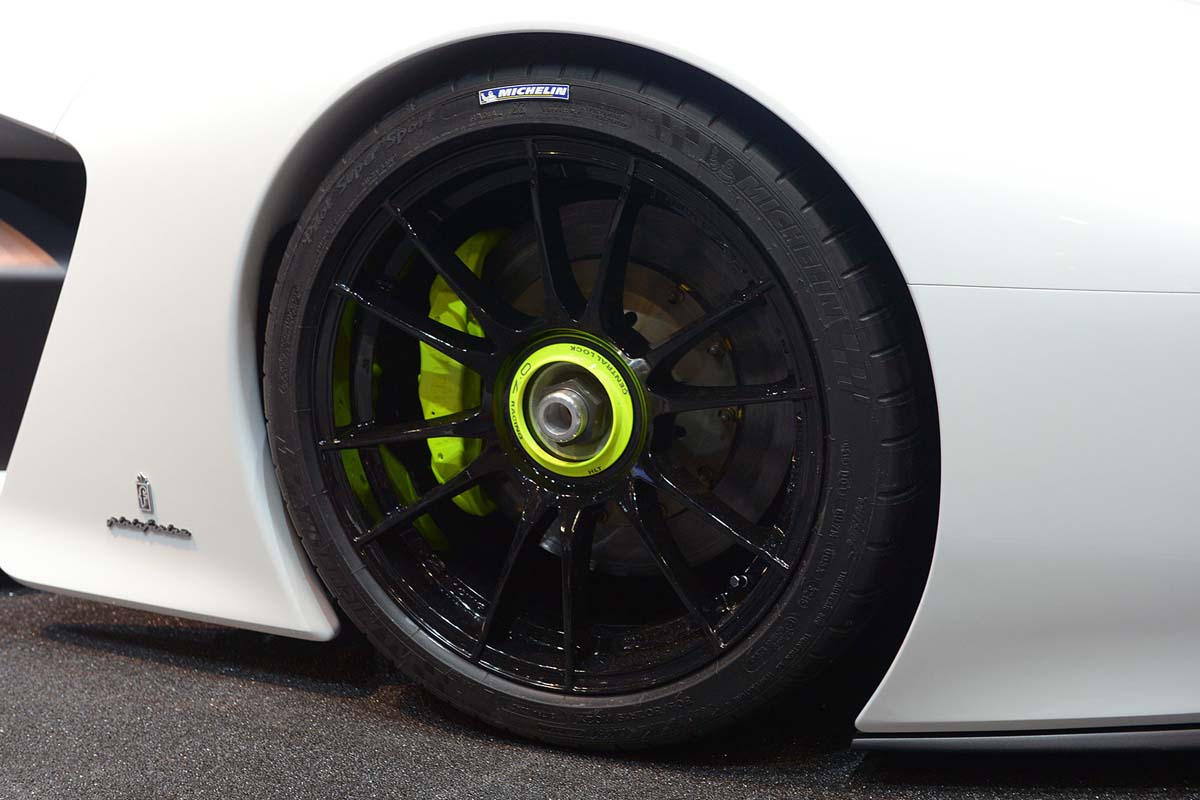 | 0-100km/h加速更是僅需3.4秒,最高末速更是高達300km/h,雖然電動車一旦收油馬達就會產生巨大的回拉力道,不過作為純賽車「Pininfarina H2 Speed」依舊是採用對向6活塞煞車卡鉗,搭配上CCB碳碳碟盤來應付嚴苛的賽道鬥爭。 |