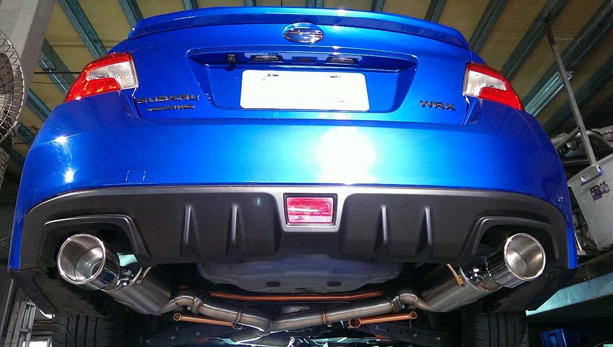 目前汽車市場上最夯的日系性能車之一Subaru WRX車款,雖然原廠排氣管沒有太多複雜的設計,同時因應目前廢氣排放標準,原廠Down pipe及Front pipe部份各有一顆觸媒,中段部份也有兩個消音桶,而後還有個Y型管相接兩個尾段,出口是設計雙邊四出。看似性能的外觀本來就應該讓排氣系統獲得提升,透過克服排氣壓力的儲存以保有適當的壓力(回壓),才能擁有完美的扭力表現。尾飾管則採用左右各一出但口徑加大至114mm,外觀看起來更為霸氣,每一段接合處都和原廠位置一樣,很方便的快速拆裝,都可直上直下。