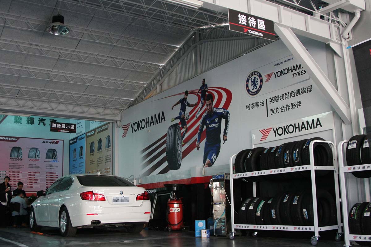 | 偌大的廠房內可同時提供多部車輛進行維修作業,並提供多款橫濱輪胎供車主選擇。 |