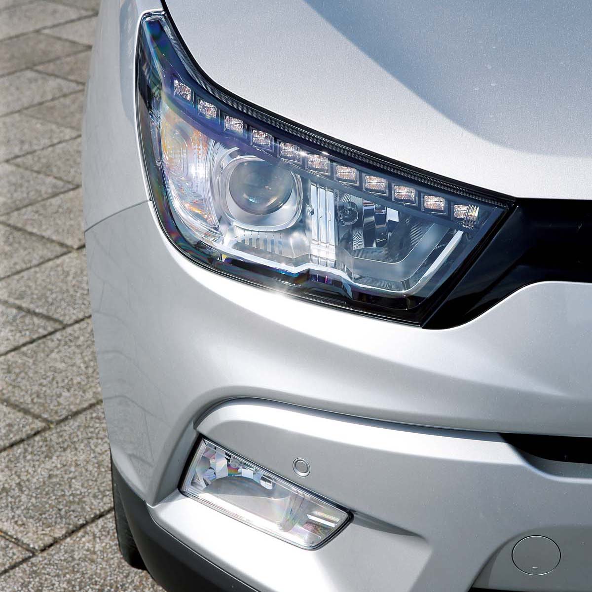 SsangYong車款一向擁有辨識度不低的外觀設計,從Tivoli緊湊卻充滿肌肉感的動感身形就可略窺一二。根據原廠指出,Tivoli的設計主軸在於時尚元素、極度動感以及濃縮的能量。首先看到車頭,與頭燈、廠徽連成一氣的線條,靈感來自於蝶式游泳選手前進時肩膀的肌肉線條;而下進氣壩與霧燈組則帶來犀牛甲冑般的立體輪廓。