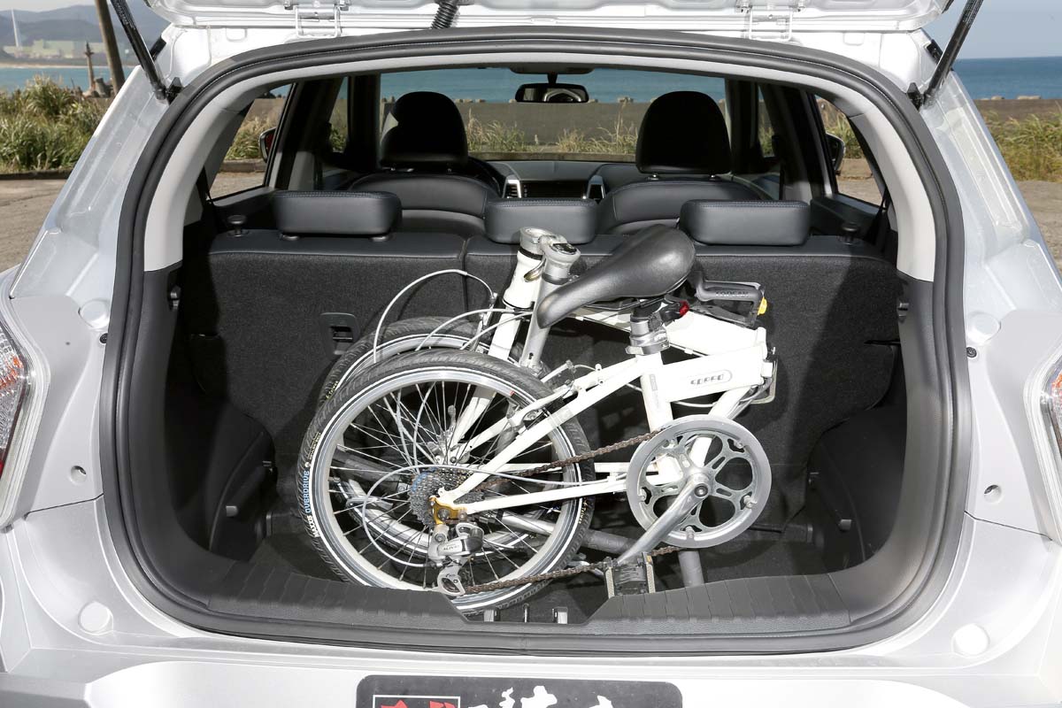 | 20吋腳踏車立起或倒下都能輕鬆置入行李廂,加上4:6分離傾倒後座,空間足敷日常使用。 |