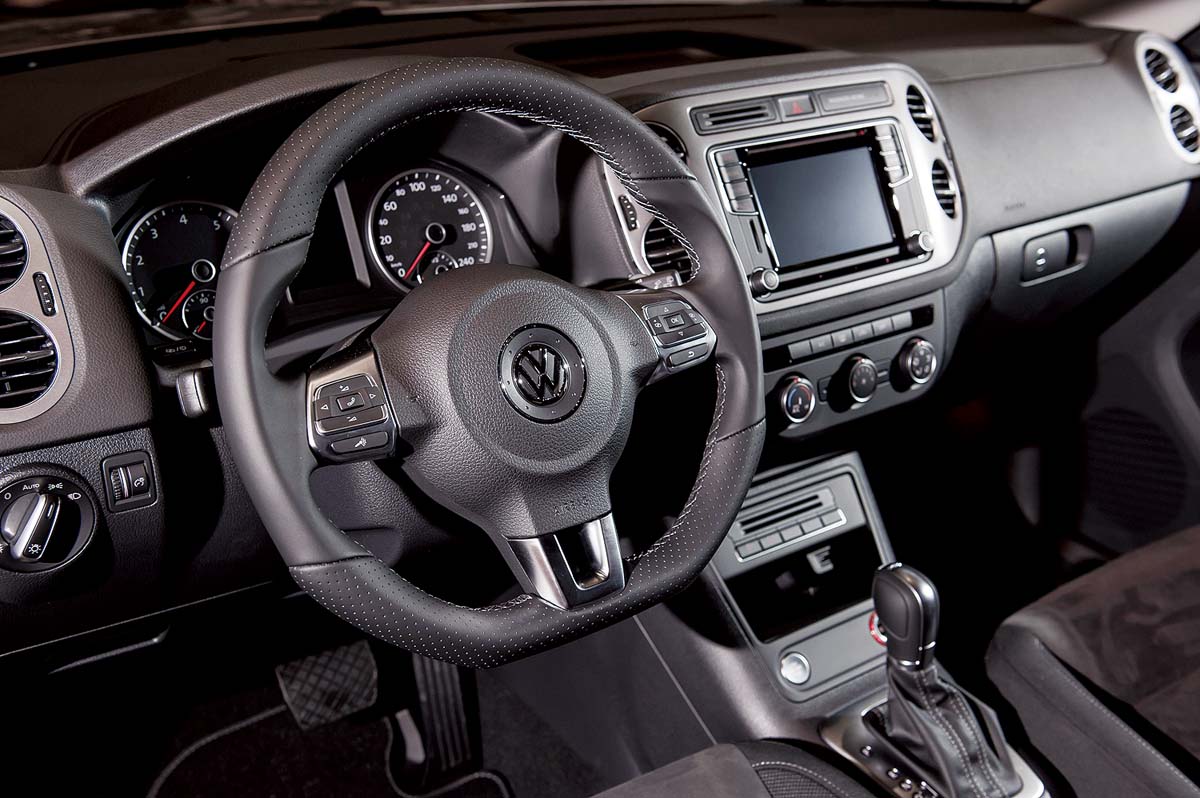| 升級的多功能跑車方向盤與座椅讓Tiguan的內裝看來更為精緻。 |