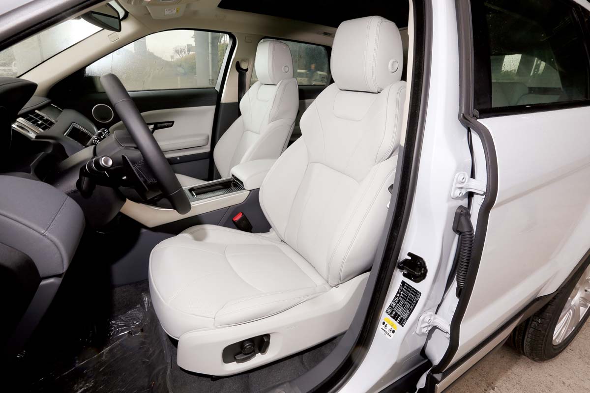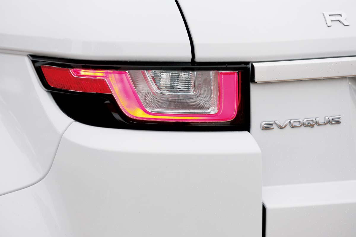 新年式小改的Range Rover Evoque,在外觀與內裝方面進行微幅修飾,其中外觀大致仍維持與小改前相同的樣貌,但頭燈處原本的LED日行燈由圓弧型改為更符合身形曲線的稜型,而尾燈為與頭燈呼應,亦從原本花瓣型改為倒梯形,讓整體神韻造型變得更具銳利科技感;另外霧燈位置也一併上移,並將進氣孔面積加大及縮小尾翼面積,讓整體運動感更加強烈。內裝格局並未作任何修改,僅將座椅造型進行修飾讓包覆性更為出色,並將原先駕駛座10向 / 副駕駛座8向調整升級至雙前座12向電動調整,亦新增胎壓偵測系統等小細節,至於家族最新推出的全地型起步系統及主動式LED頭燈則列為選配項目。
