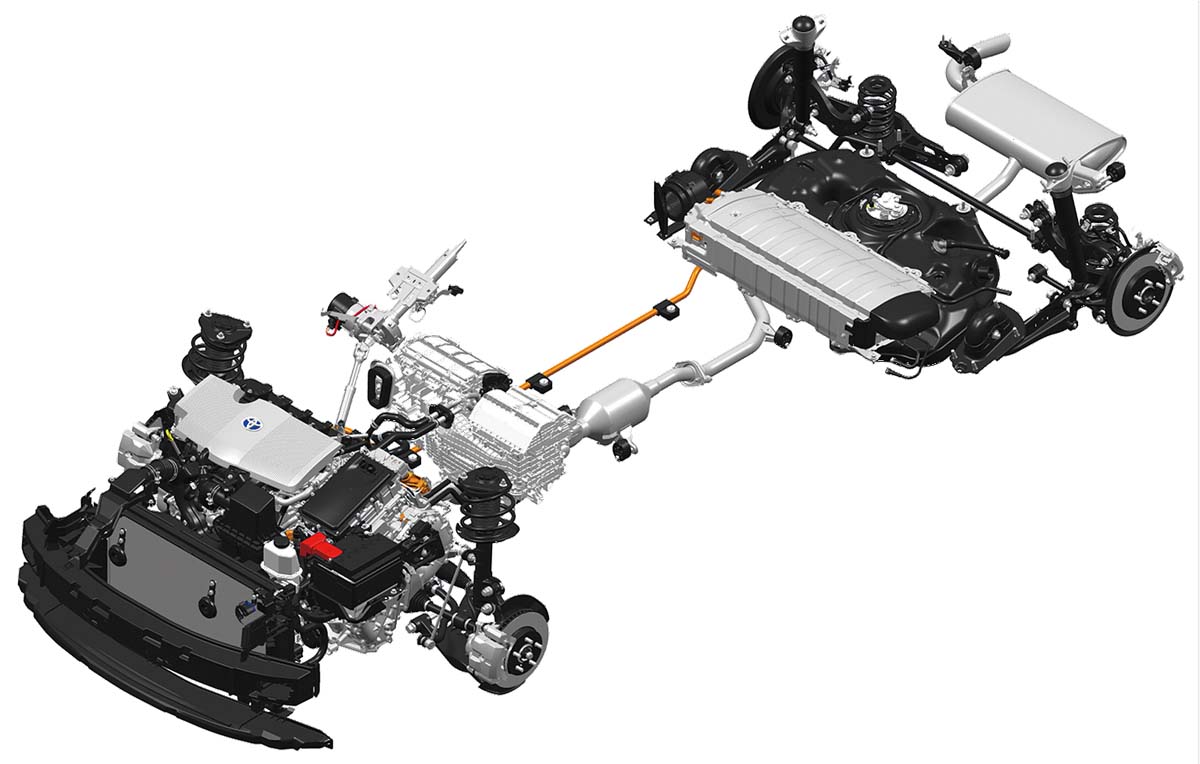 Toyota表示,雖然輸出表現沒有明顯進步,但重新設計進氣口形狀與EGR廢氣循環系統等工程後,有效增加燃燒效率減少熱能流失,讓熱效能更為提昇。「電」的部分則採用E-CVT電子控制無段變速系統、具備72ps/16.6kgm輸出表現的電動馬達之後,可以達到122ps綜效輸出馬力,可讓其於10.6秒完成0~100km/h加速過程。