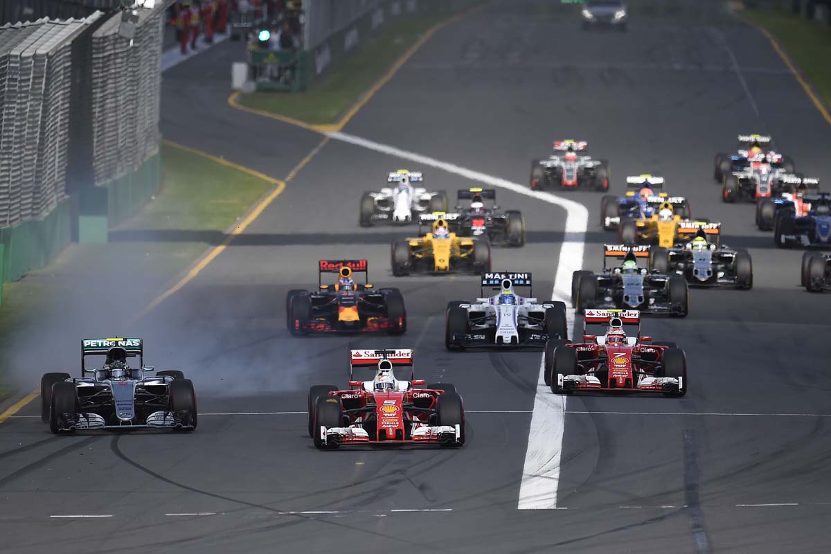 起跑不只失利、而且可說是失態的,就是排位賽大幅刷新賽道紀錄的Lewis Hamilton了:他不只被Nico Rosberg以及兩部Ferrari超越,甚至因為自己的動線被隊友卡住、而落到Williams和Toro Rosso後面,然後他發現連Toro Rosso都沒那麼好超、希望車隊能提供策略,但以現在F1對無線電通訊內容的限制,車隊提供任何建議都是違規。