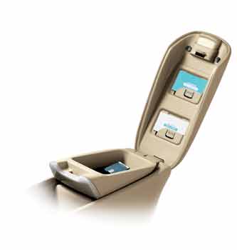 前座鞍部的全新機能創意空間,可依據收置提包、物品的大小隨心變換。扶手上蓋180度反倒後,即為後座的置物托架。扶手置物空間上的夜間微光照明,即使昏暗夜色下的拾取收納也能優雅從容。 |