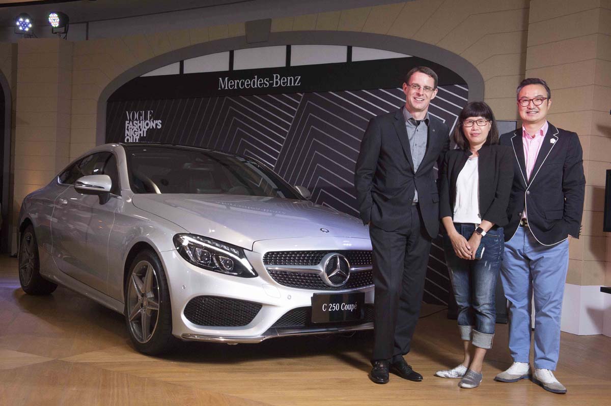 ‧ VOGUE與Mercedes-Benz共同打造全台首間數位概念時尚快閃店『FNO Avenue時尚靚區』正式亮相!時尚女王楊謹華與新時代男神錦榮攜手站台,搶先體驗最酷炫互動科技購物趣,亦為今年《VOGUE Fashions Night Out 全球購物夜》起跑揭開序幕!‧ 推動在地時尚新浪潮,Mercedes-Benz將於台北101購物中心館內,展出由台灣賓士贊助獲邀登上2016秋冬柏林時裝週舞台,並受到國際時尚媒體一致好評的實踐大學設計系優秀作品,讓台灣新世代設計實力被更多人看見!‧ 矚目新星The new C-Class Coupe以先鋒之姿驚豔FNO時尚靚區,魅惑美型車身結合時尚投影,化身前衛裝置藝術演繹百變時尚姿態,成為全場吸睛焦點。