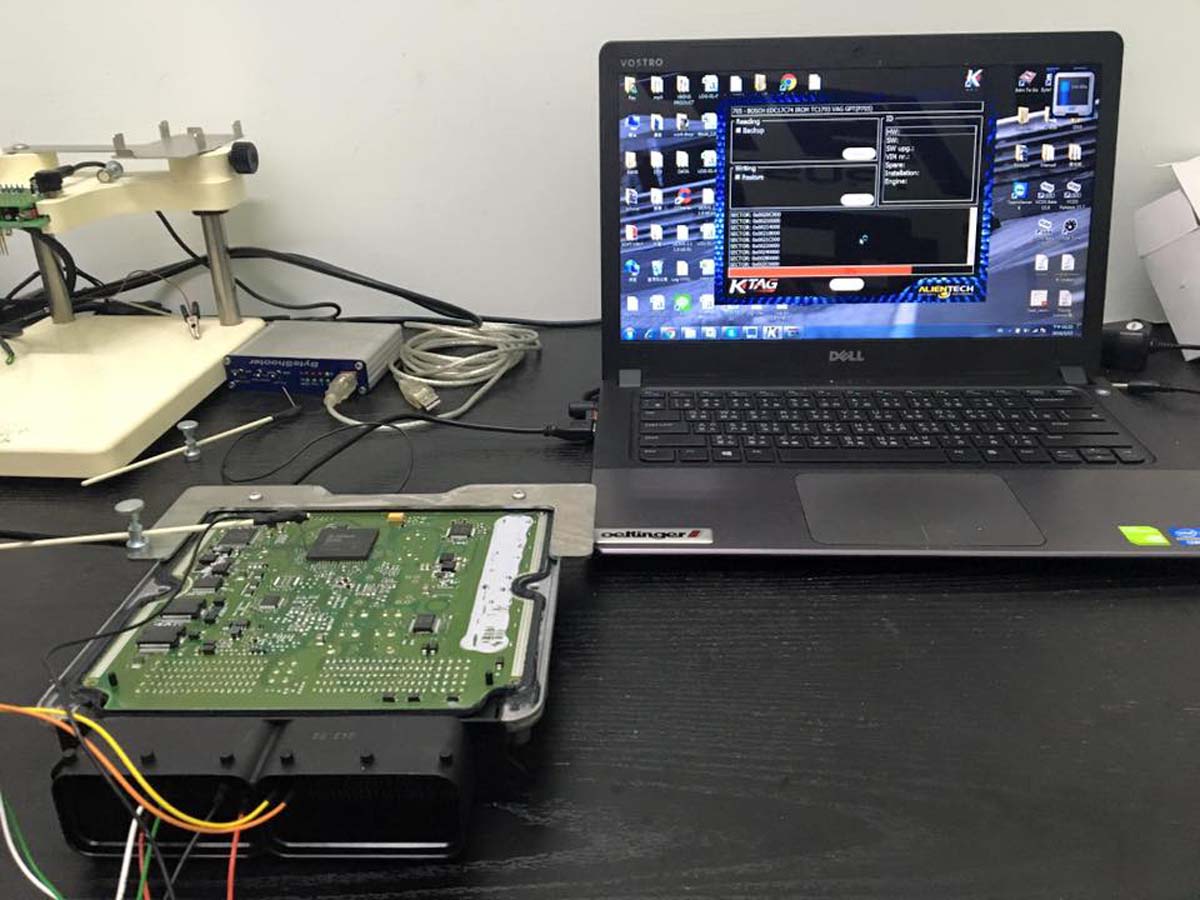 | Oettinger的ECU程式調校技術除了寫入式刷機外,對於EA888引擎還有外掛電腦可選擇,由於能與原廠ECU進行Can-Bus溝通與介入,因此能調校的項目除了沒有解限速的項目外,其他與寫入式晶片一樣。 |