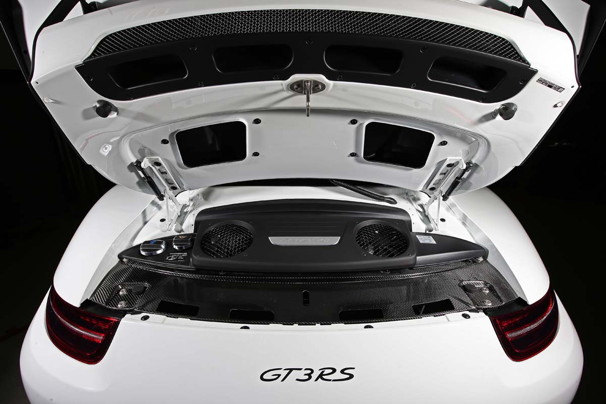 | 透過車頂採用鎂合金,引擎和行李廂蓋採用碳纖維材質,加上其他輕量化零件使得991GT3 RS的車重能控制在1420kg,較一般GT3輕了10kg。 |