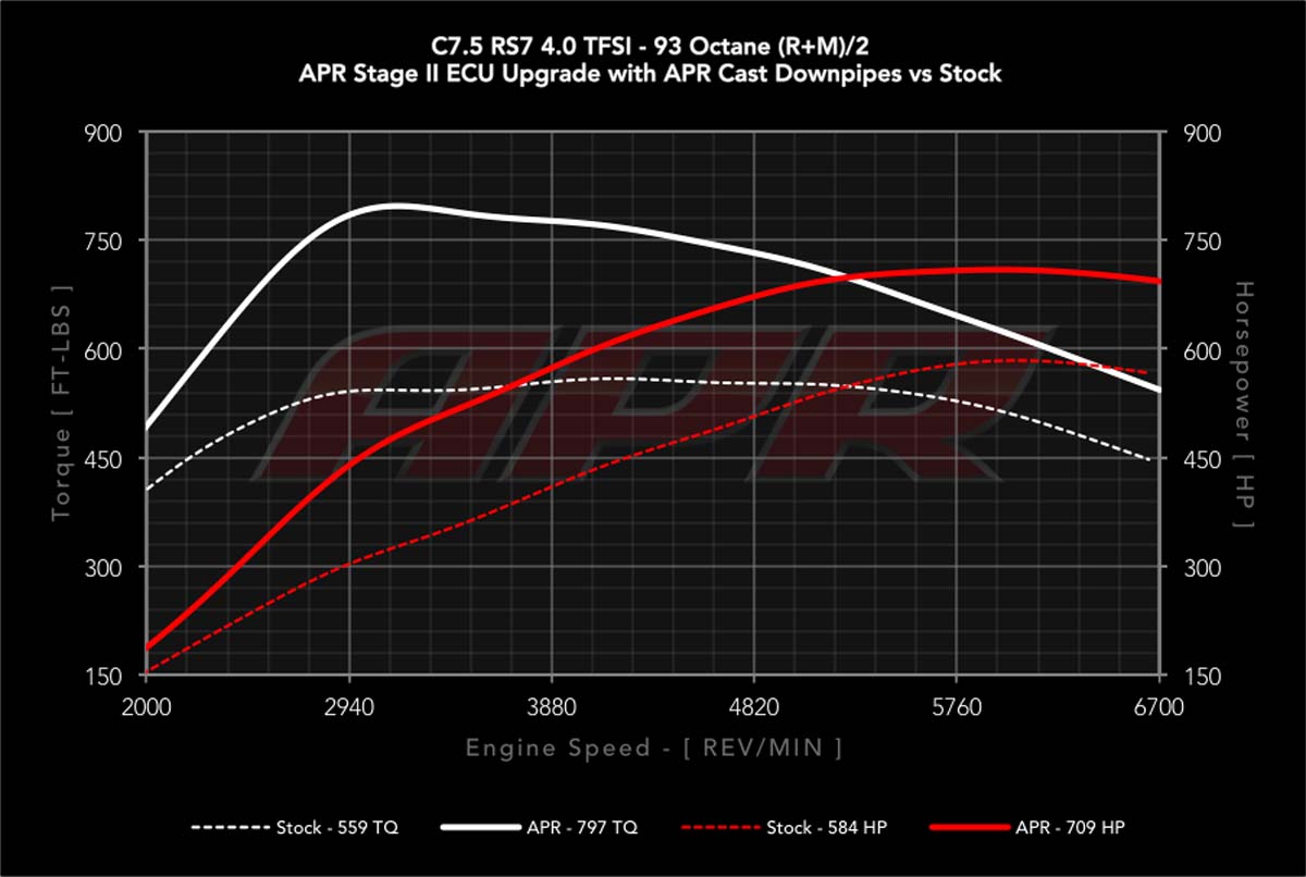 透過上述的動力改裝,據APR原廠官網上的資料表現,可使最大馬力提昇到709hp的水準,最大扭力更達110.2kgm的水準,相較於560hp/71.43kgm的原廠數據,整體提昇幅度相當明顯。