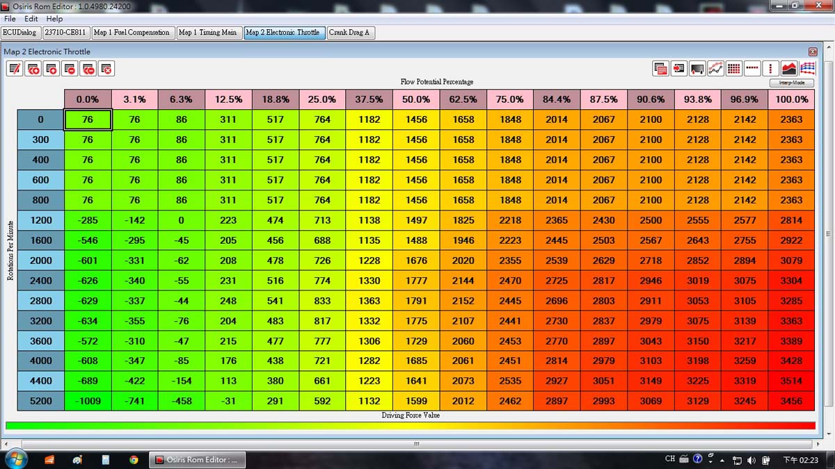 | 這是UpRev的調校介面,看似簡單的數字與參數,調校時還是需經驗豐富的Tuner才能抓到正確的數值,且客製化的撰寫過程,即使外掛渦輪或機械增壓系統,一樣可以處理的服服貼貼 |