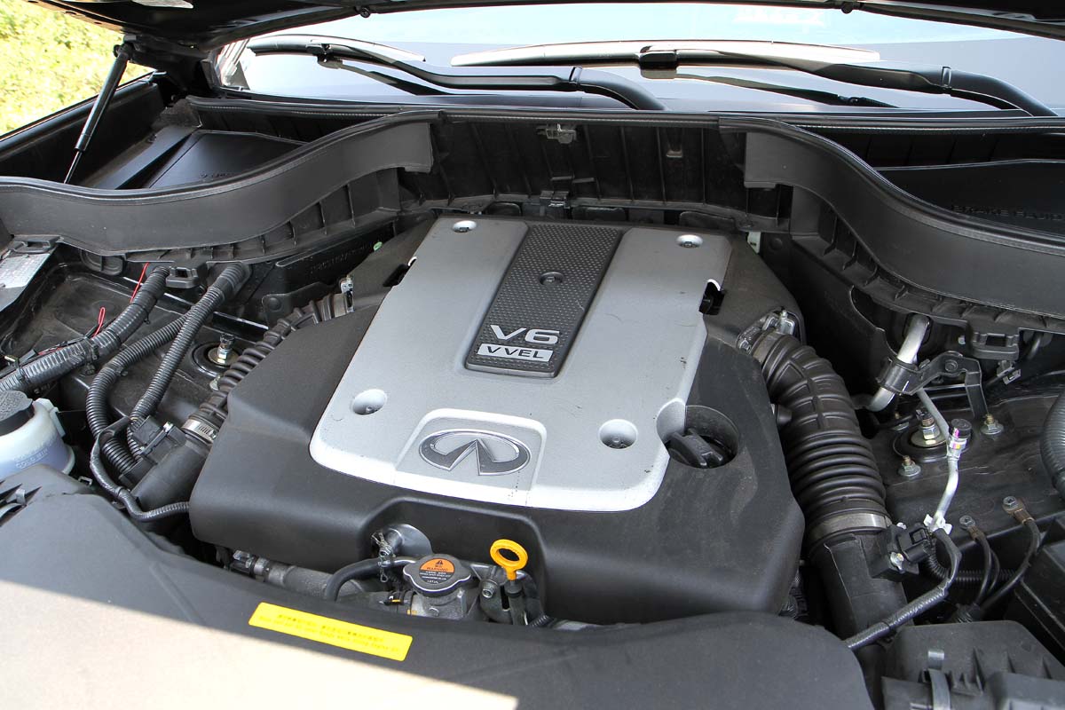 使得Infiniti FX37改名為QX70,內在都還是跟FX37一樣,引擎同樣搭載著名的VQ37VHR 3.7升V6自然進氣引擎,可輸出325hp、37kgm的最大動力,底盤則採用輕量化的鋁合金前雙A臂、後多連桿結構,並讓車身達到50:50的均衡前後配重比例,使QX70在豪華休旅車的外表之下,依然有著良好的操控表現。