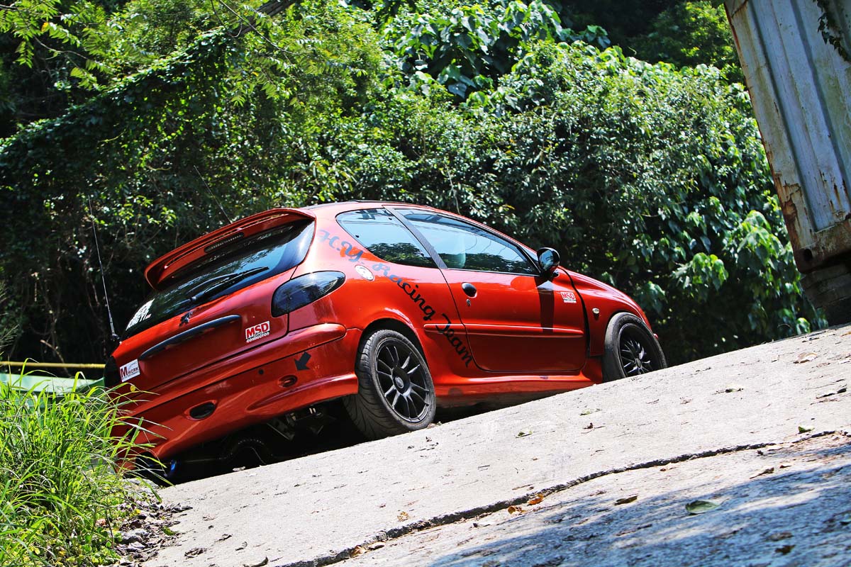 另外也直接廢除了原廠1-4、2-3缸的點火與噴油的設定,透過MSD點火系統更改為獨立式的直接點火設計,並且透過MoTeC M150全取代系統來製作凸輪軸訊號,將噴油系統變更為1、2、3、4獨立噴射系統,而在目前設定高達2.0bar條件下,噴油嘴也一併更換上4支1000c.c.規格,目前這輛Peugeot 206則是在馬力機上拉出350hp的最大動力,直接暴增3倍以上的出力。