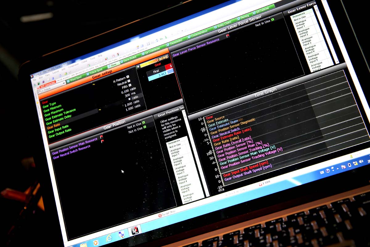 M1 Series所提供的專寫功能絕對無庸置疑,只要撰寫者程度夠高,基本上要寫出比原廠電腦更細膩的監控程式也是沒有問題,並且主機內就內含O2、爆震、增壓等模組,撰寫時也不在需要外接任何轉譯機,另外一點全取電腦相當重要的就是訊號波形的讀取,過去M800只能對應到2個波形,而M1 Series以提升至12個,也因此可以更精準地透過波形訊號去判定燃料的噴射時機。還有一點筆者在這次採訪才知道的最大重點,絕大多數的人都會認為,大改車輛或是純競賽車輛為了壓榨動力,引擎的耐用度也不會有多好,其實這個想法在MoTeC M1 Series上並不成立,M1 Series提供每缸的空燃比數值,及4種不同爆震頻率的監控,並且可以透過參數設定油水溫與油壓的警戒值,一有問題就可依照撰寫的參數設定來降低動力輸出,或是常見的單缸退點火等各種手段來確保引擎不出怪手,另外即時Data Log功能可與撰寫介面開在同一個視窗,讓撰寫者可以即時發現問題點隨即進行修正,與大多數「Data Log」與「撰寫」僅能分開進行的設定相比強大許多。
