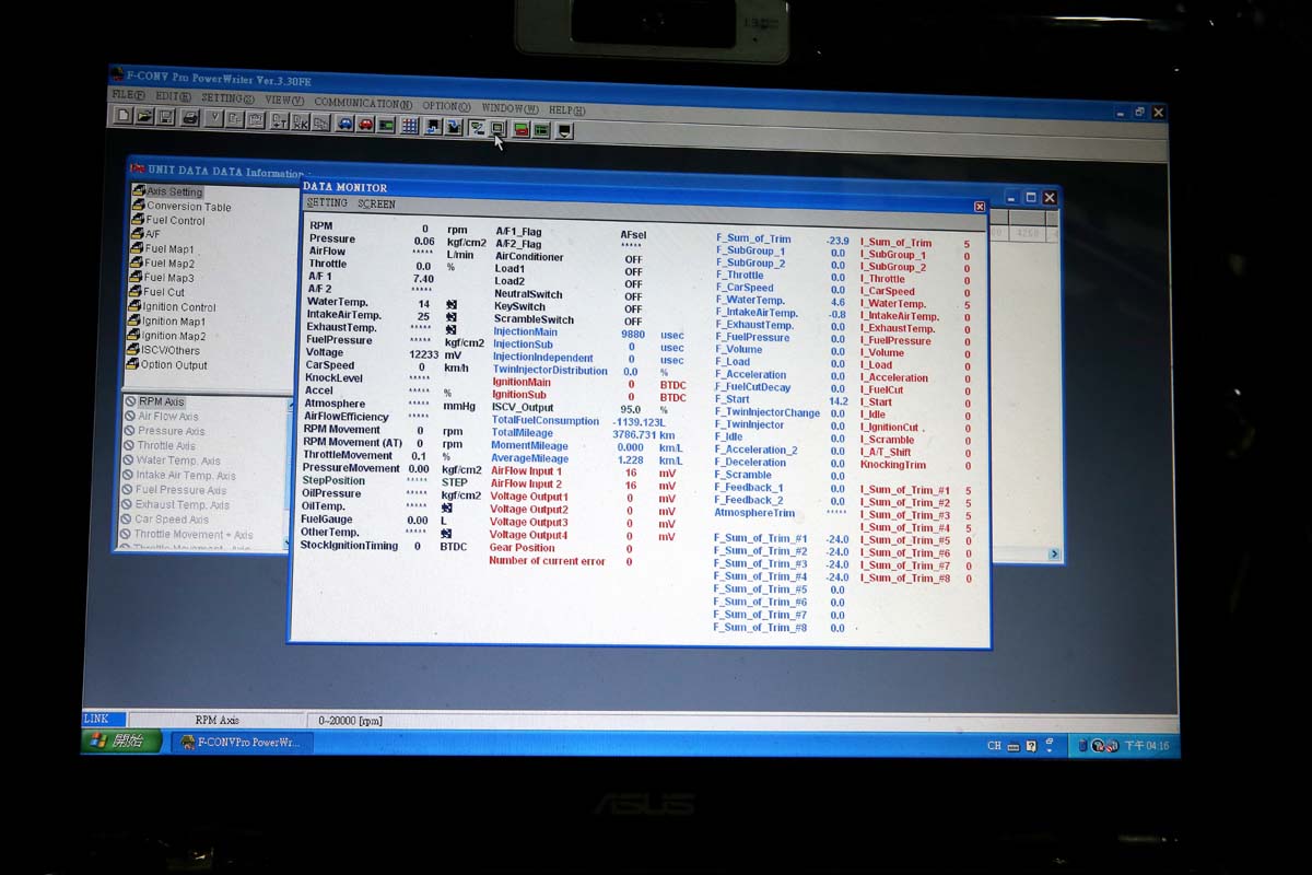 F-Con V Pro的撰寫方式與歐系電腦不太相同,像是空燃比的設定就是採用台灣人習慣的AF值,供油部分的設定則是最常見噴油嘴的「噴射率」,與歐系系統最常使用的「Λλ」及「VE」完全不同,不過好佳在台灣的改裝技術多半是由日本為基礎所衍伸,這樣的撰寫方式對於大多數的撰寫者來說是完全沒有問題的,並且補正機制也是相當全面,像是吸氣溫、水溫及加速補正一應具全。F-Con V Pro設計基本上是屬於便利型的「全取式」電腦,沒有內建電源模組下因此僅能使用原車線組,因此過去像是舊的版本就僅能依照燈號點滅長度來判別故障碼,而3.3版本則是大幅進化貼心的多了「故障碼」讀取功能,大幅提升維修上的便利度,當然另外像是Data Log或是冷熱車時的噴射率功能都內含其中,如果以全取代電腦來說,算是相當便宜大碗的可成式產品。
