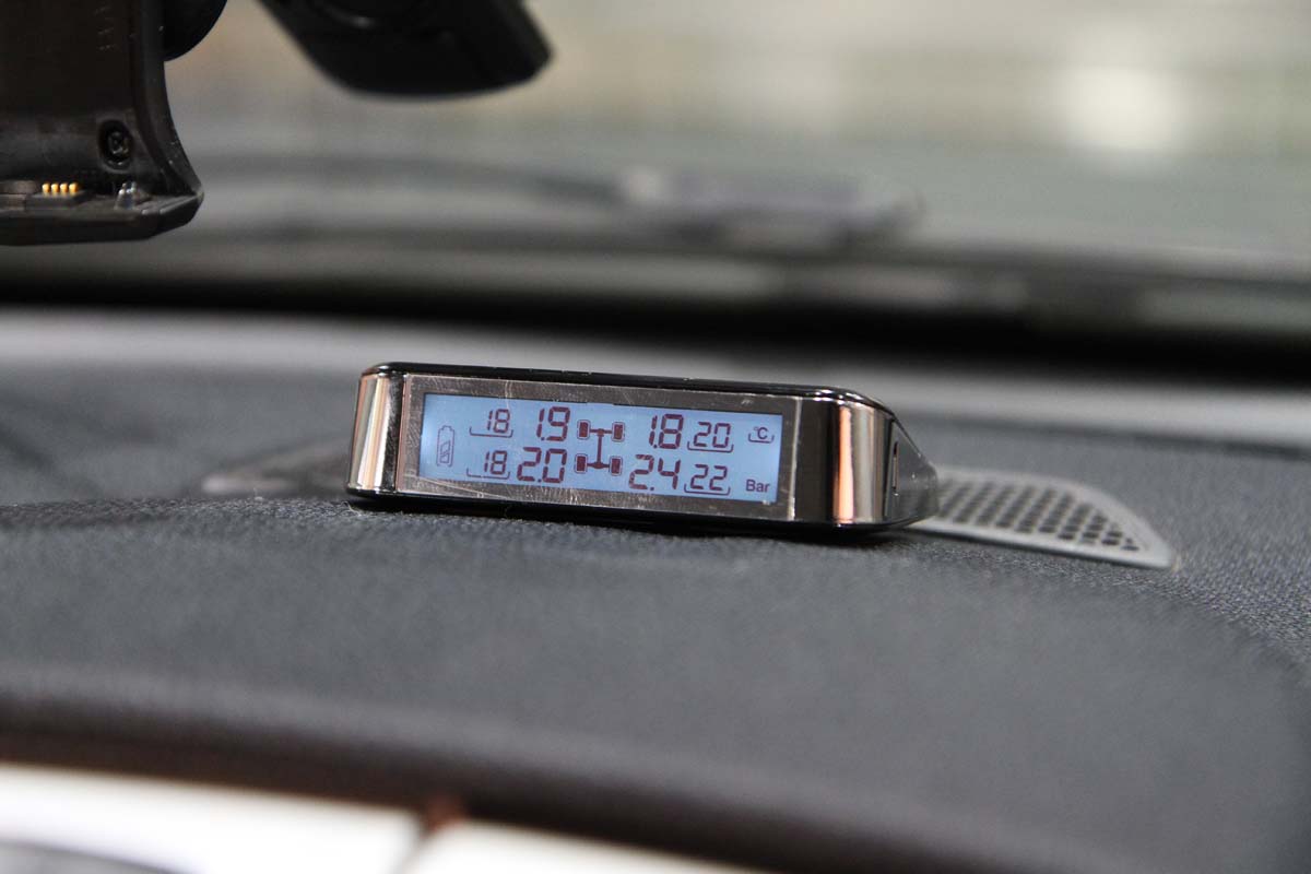 | 這部最新型的太陽能式胎壓顯示器,安裝時不需接任何電線,直接放在中控檯上即可,可同時顯示胎壓與胎溫數值,體積小的優勢,不占內裝空間。 |