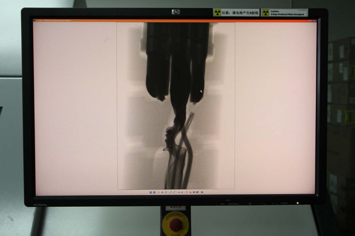 檢驗方式:再多的檢驗都有可能出現遺漏,為了事後追查問題所在,以作未來改良依據,讓問題不再發生,然而有些灌膠防水的不良品一旦拆解後,病灶有可能被破壞而無法察覺,或是電路電路板或晶片焊接不良、電線短路等問題,目視不見得能找出問題,因此鐵將軍特別斥資新台幣數百萬元,購買這部X光透視檢驗機,其最大功用就在於不需拆解產品,就能透過透視的能力,將產品內部的問題找出來,是相當先進的檢驗儀器。