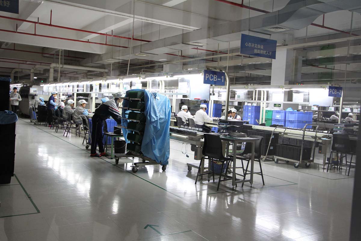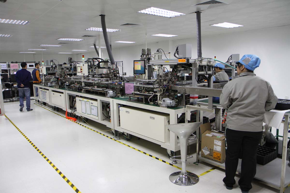 生產線的介紹部分,鐵將軍廠內擁有超過10條以上的SMD自動化打件生產線,與多條人工插件料生產線,前者每條生產線所需要的設備,在台灣據聞都需投資1千萬元才能打造出來,這兩種產線都是用來將電子元件,例如處理晶片、電阻、電容、二極體等零件,燒焊到俗稱電路板的PCB板上的生產線,在台灣相似的產業很多都是委外給專門的打件廠負責處理,在將打件好的PCB板送回廠內組裝,很少能有一條龍式的生產過程,也因為如此,鐵將軍才能擁有深厚的開發技術,與快速的修正產品問題能力,也因此才能滿足OEM市場的需求,因此這些OEM客戶要的都是客製化模組產品,沒有靈活的開發設計能力,是無法滿足其需求。