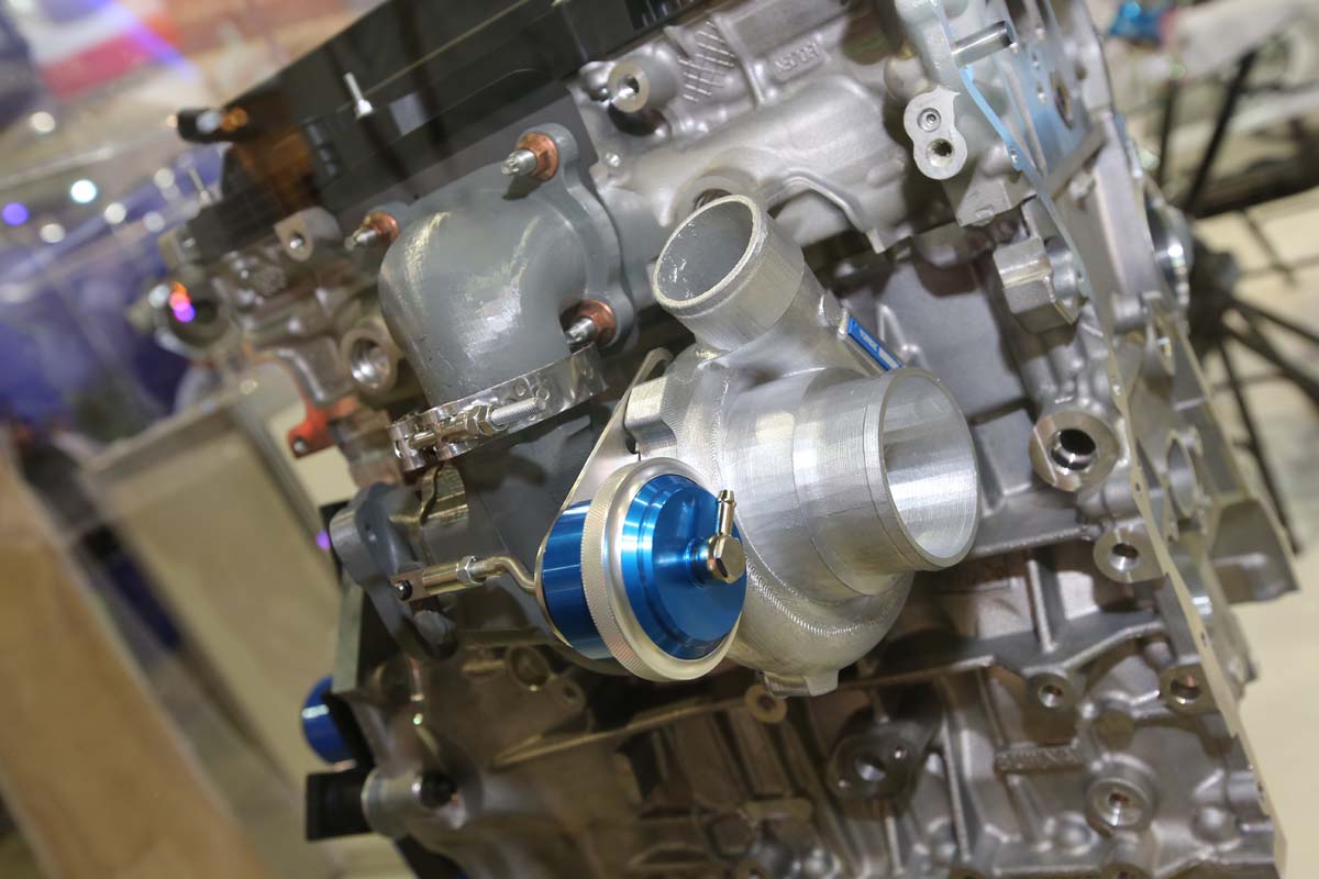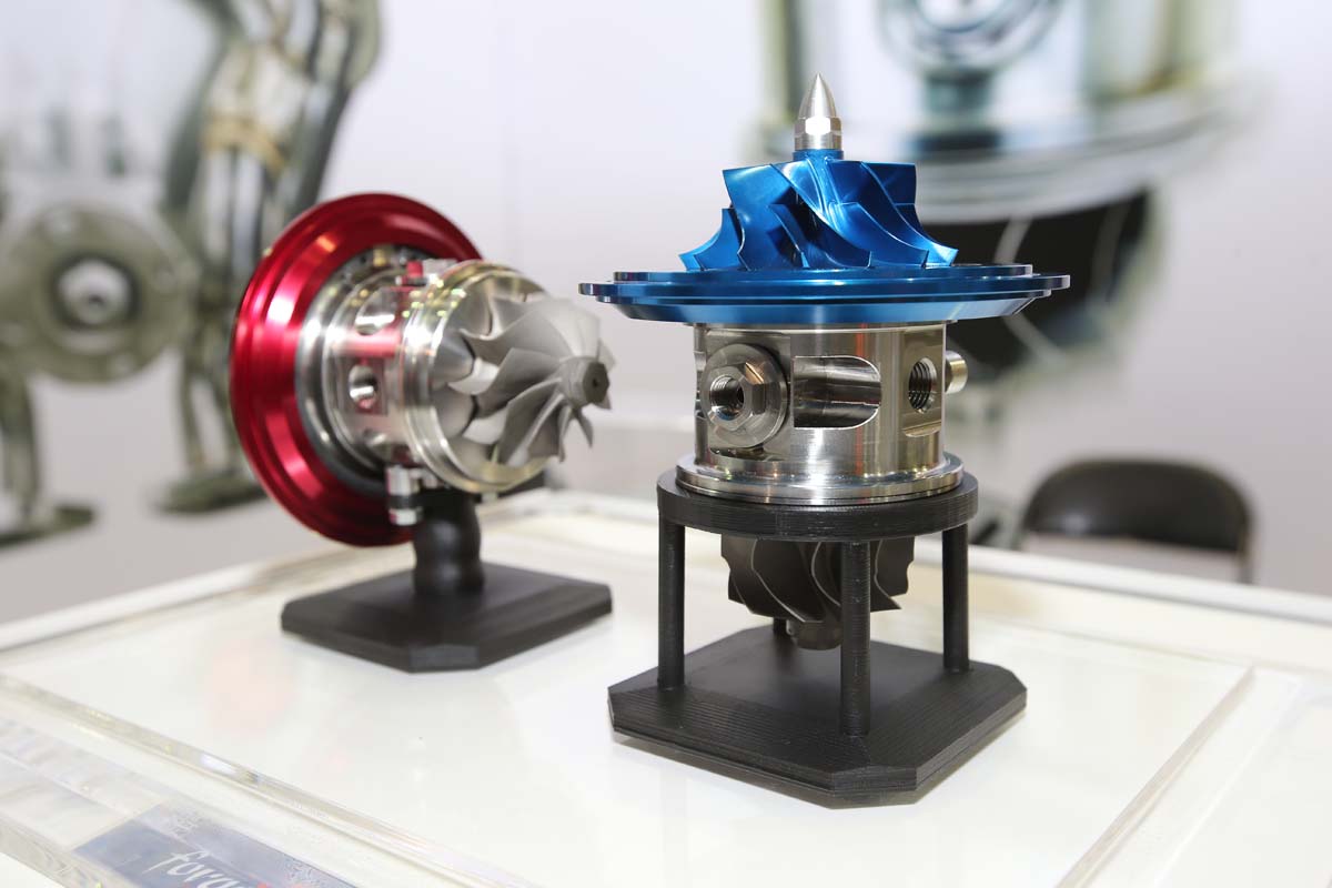 以渦輪機研發、製造的「Zage中勝」,今年展出新的研發技術:3D列印,從排氣歧管到整具渦輪機,皆可運用3D列印技術做出雛形,在獲得孔位、角度等各項數據之後再開始生產,可大幅降低產品不良率,提高準確度。此外,中勝發表全新渦輪機中座殼,採用高強度鋁合金材質,可提高強度、耐熱性,而葉片部分採用陽極處理,使渦輪機更為新潮、美觀。