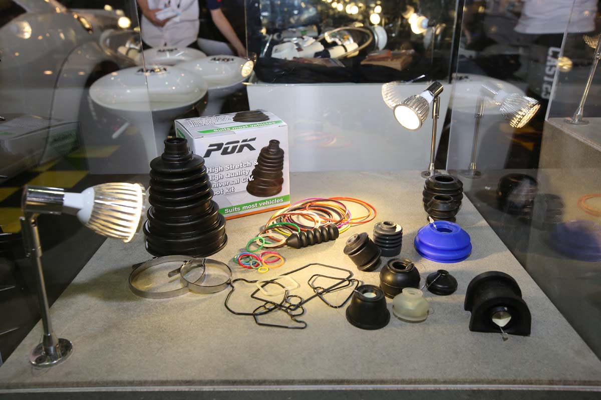 POK品秀專門生產軟硬式橡膠產品,像是傳動軸防塵套、底盤襯套等,而AirRex是品秀的延伸,主力就是大家熟知的氣壓式避震器,在這一波哈拉風、暴龜潮中成為改裝必需品,加上與日本LB Performance合作的關係,可說是迅速竄紅,在今年攤位上更展出首次曝光的BMW M4實裝車,為了提高完整性,就連鋁圈與螺帽都是訂製品,吸睛度滿百。