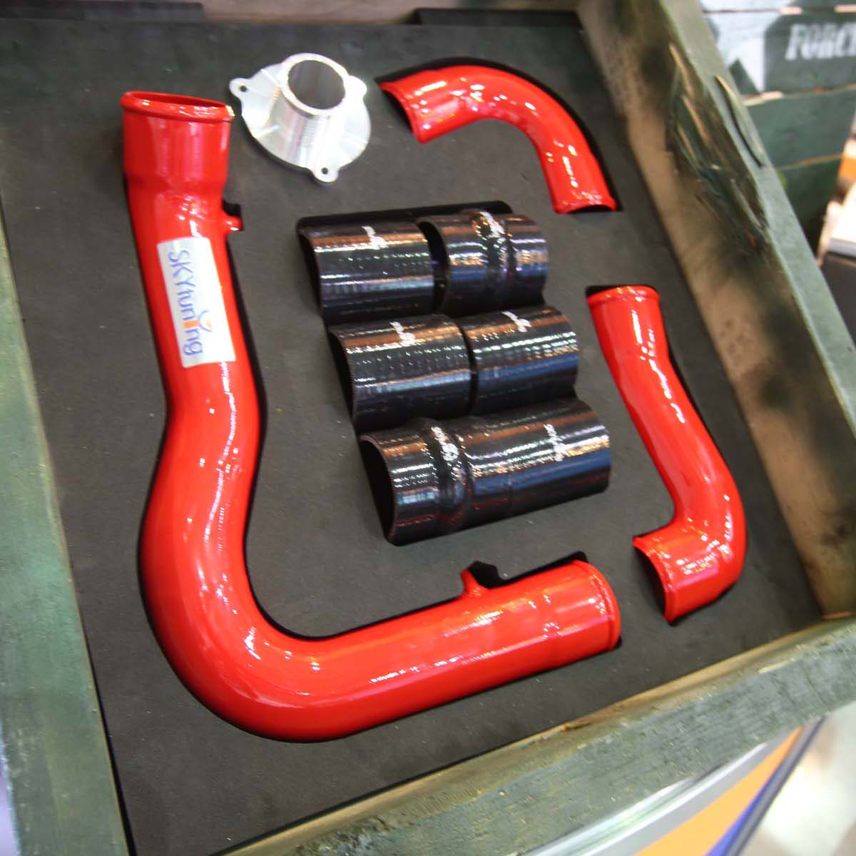專職汽車零配件設計、開發的奕榮,產品包含進氣系統、進氣管路、強化矽膠管路、排氣強化系統等,產品外銷美國、德國、日本、加拿大等國家,而今年首次發表專為7代VW Golf GTI所推出的動力套件,諸如渦輪Down Pipe、進氣管路以及渦輪加速管,搭配ECU改寫程式,於馬力機上已測得117hp馬力的提升,效果可說是相當驚人。