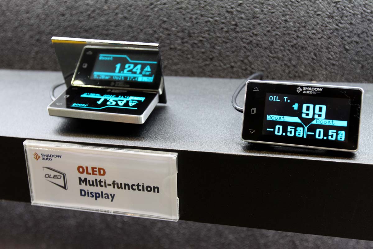作為電控儀表開發大廠的Shadow auto,今年推出多功能OLED顯示器,消費者可自由選擇三種引擎監控數據,這樣一來就能免除安裝許多賽車儀表的困擾。此外,為了滿足改裝賽車方向盤卻無鈕可按的遺憾,因此開發外接式賽車控制鈕,可直接對應市面上的改裝三幅式方向盤,加上控制盒有8組訊號可連接,這樣一來方便駕駛輕鬆使用。