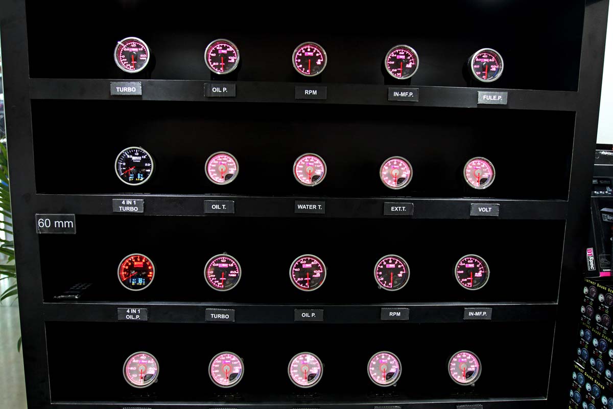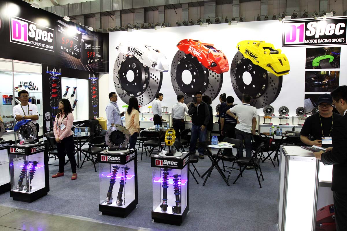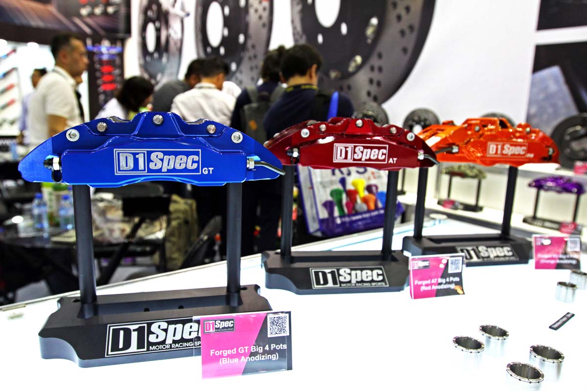 營業項目相當多元化的D1 Spec,一看到攤位大概就很清楚今年的主力項目煞車系統,為了滿足不同的消費者需求,同時因應不同車型可能需要的對應卡鉗造型,因此可以看到光是對象四活塞就一共有GT、AT、RS卡鉗系列,不過若是需要更大的六活塞與八活塞則僅有GT或RS系列可選擇。另外,為了滿足賽車儀錶有更豐富的色系可切換,因此今年增加為7色功能。