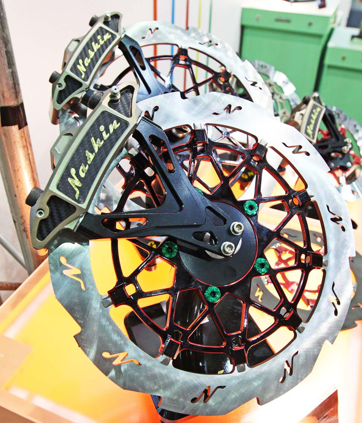 作為台灣煞車製造大廠之一的Nashin,今年為了讓產品線能夠更為齊全,同時因應不同車型的產品需求,因此特別拉出五種類別,從小型車到賽車全都包辦,不過最令筆者有印象的應該就是兩輪專用煞車系統,簍空碟盤還能刻上字母,這在汽車碟盤上應該相當罕見。除了煞車之外,已著手推出的鍛造輪圈恰好能與煞車系統相呼應。