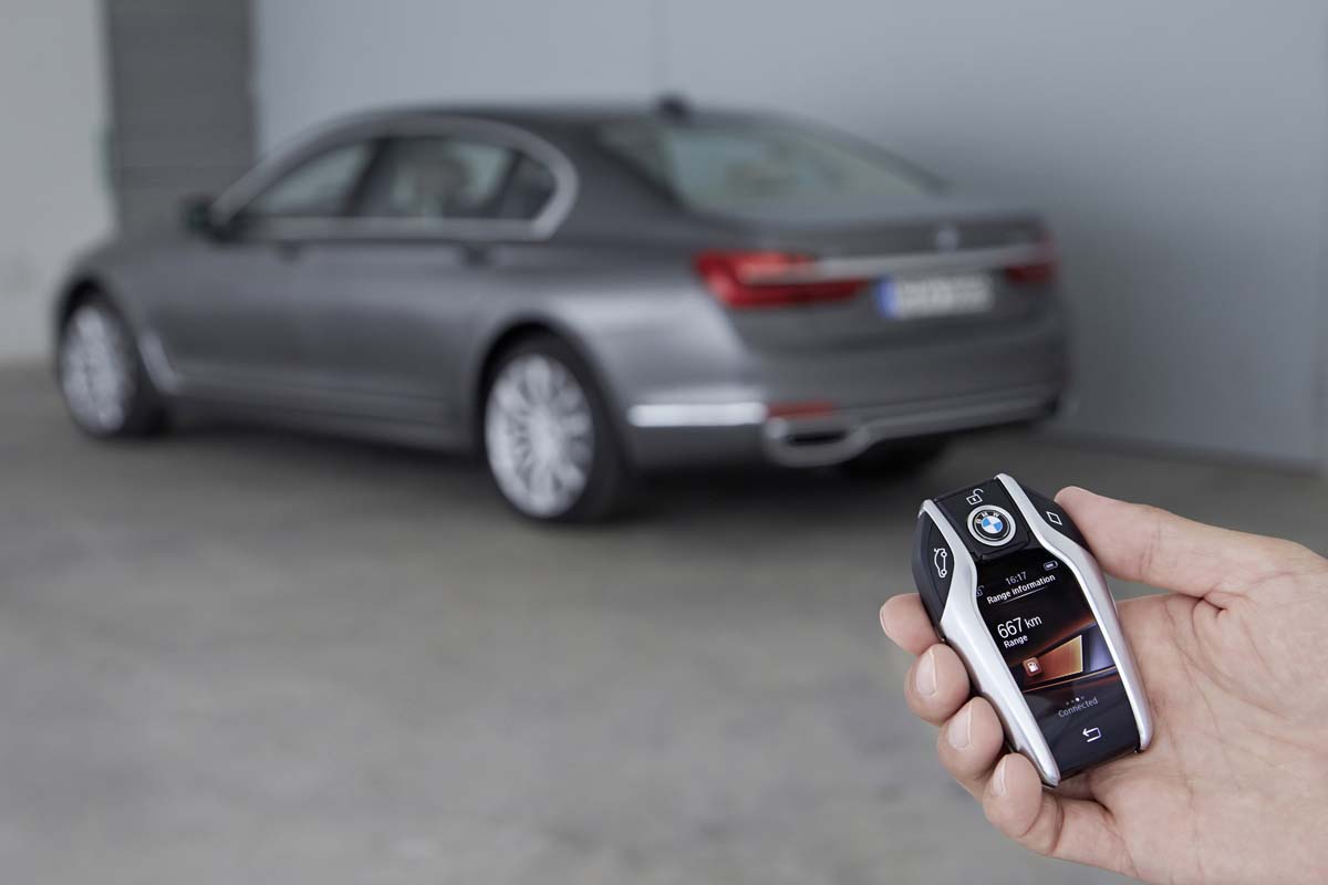 首先全車系都標準配備了智慧型螢幕鑰匙(Display Key),突破過去車鑰匙的運用想像,可完全與車輛相互連結,具備類智慧型手機之基本功能,可顯示時間、可行駛里程、車窗及車輛上鎖狀態、保養資訊以及預先啟動送風功能,並且可透過前中央扶手內的無線充電裝置替鑰匙充電,光是拿著鑰匙就讓人有置身於未來的錯覺。進入座艙中,7 Series仍然配有著名的iDrive中央控制系統,但是在操作上卻有新突破,除了中央的10.25吋iDrive顯示螢幕可以觸控方式操作,標準配備全球車壇首見的手勢控制功能(Gesture Control),透過位於前座中控檯上方的感應器,駕乘者能以簡易手勢輕鬆下達接聽或拒絕來電、音量調整與自訂指令(如關閉iDrive螢幕、設定導航等),完全不需要觸碰任何按鍵或旋鈕,在科幻電影裡的憑空手勢操作畫面,在7 Series上提前實現。而觸控功能也同步運用於空調面板,輕觸或滑動手指便可直覺性的調節車內溫度,便利且兼顧行車安全。
