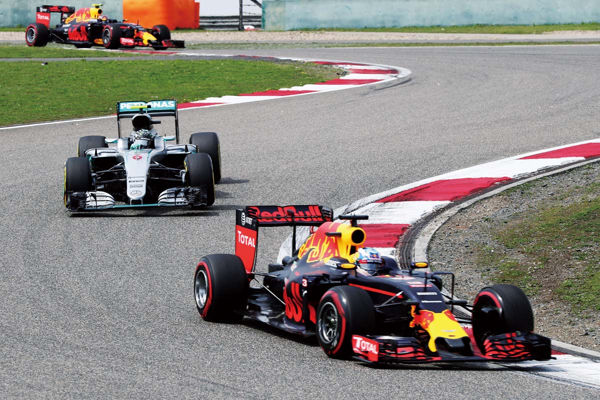| Red Bull預期今年動力不佳,但Ricciardo連三站均獲第4,中國站起跑還領先,只可惜第2圈就爆胎。 |