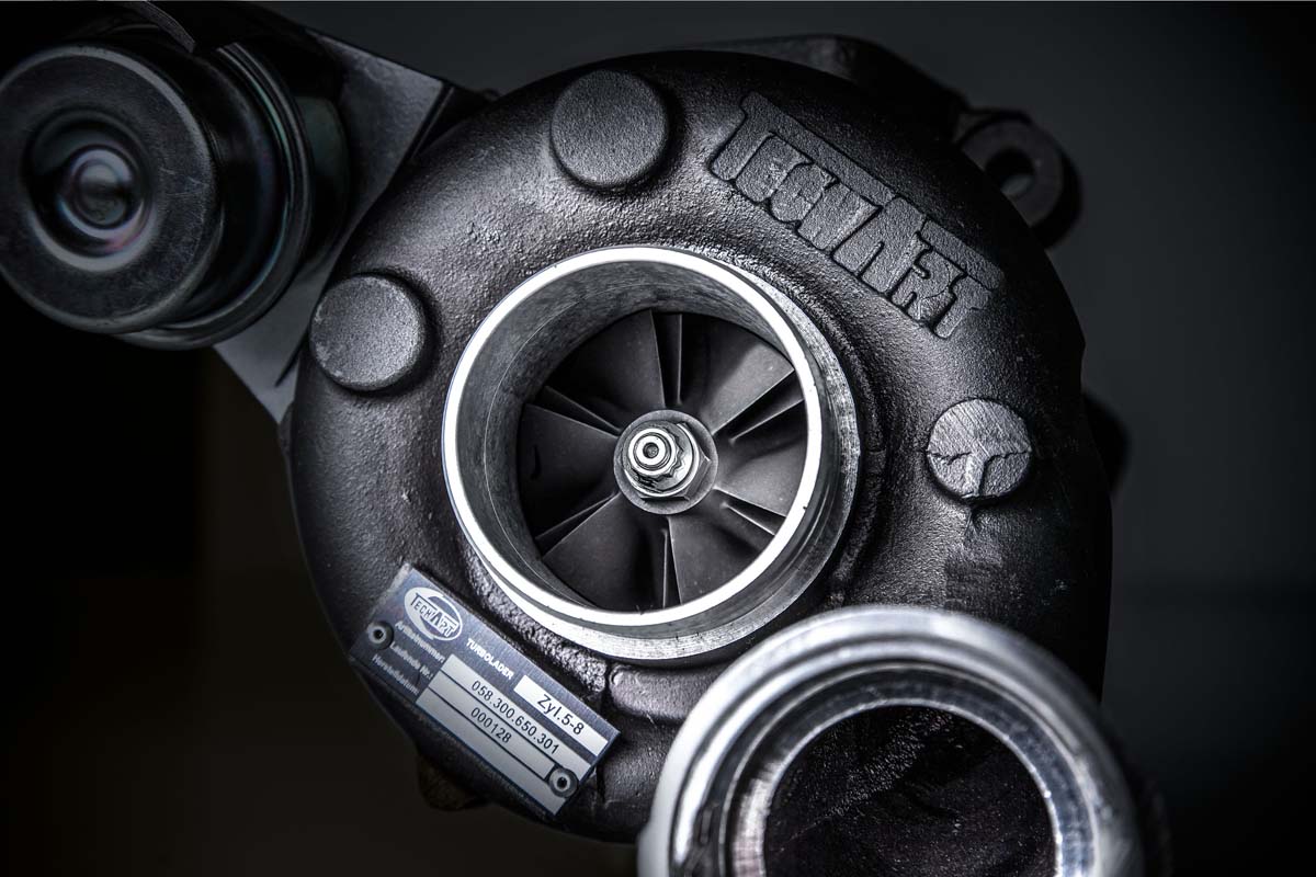 | 最特別的是全新TA058/T2套件,除了基本的進排氣強化系統、Techtronic改寫程式之外,渦輪機也改為Techart高階製品,如此一來能使最大馬力從520hp提高至700hp。 |