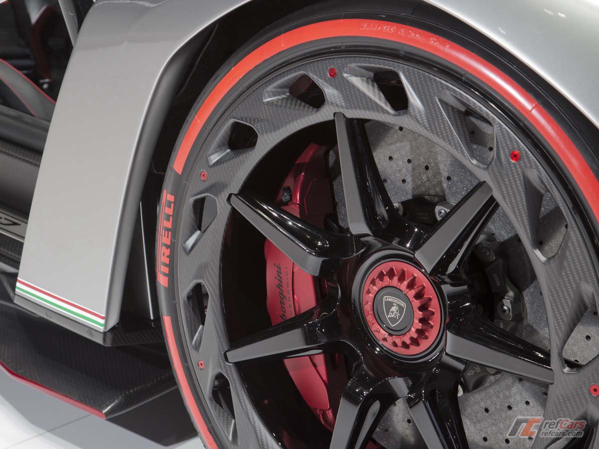 | 單孔碳纖維輪圈及碳纖維制動系統都可看出Lamborghini Veneno的不凡地位。 |