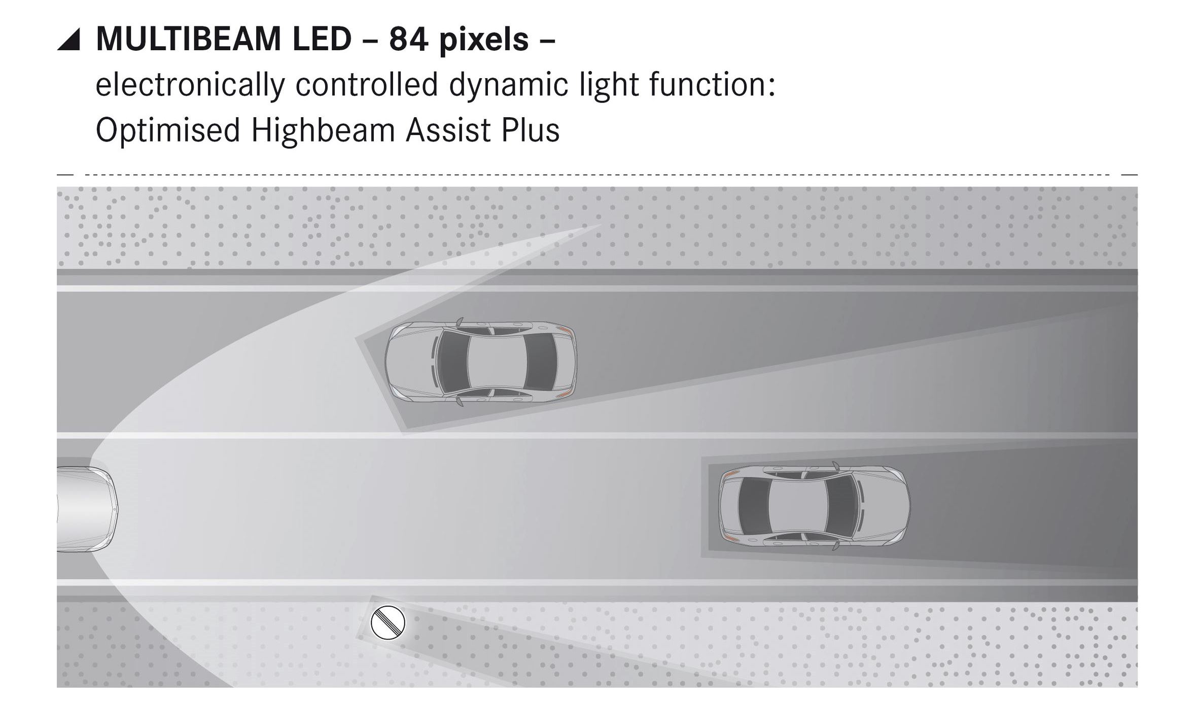 | 多光束LED智慧型頭燈可全天候開啟遠光燈模式,確保最佳行車視線之際,會自動閃避其他用路者路線避免眩光 |