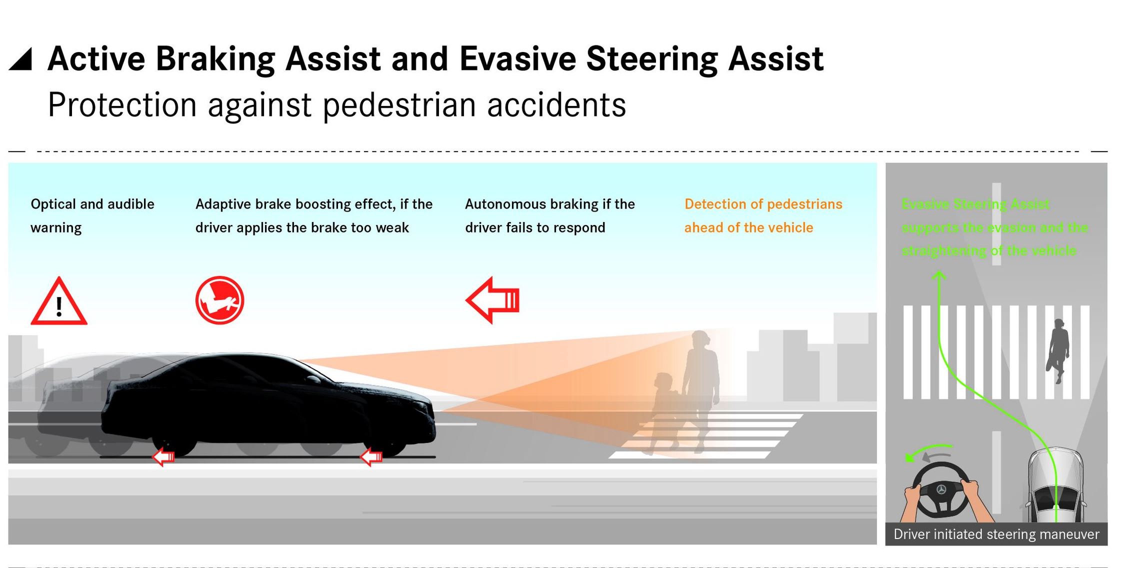 | 若當遭遇前方行人無預警的突然出現,此時閃避轉向輔助系統會自動開啟,避免駕駛閃避轉向過猛造成失控 |