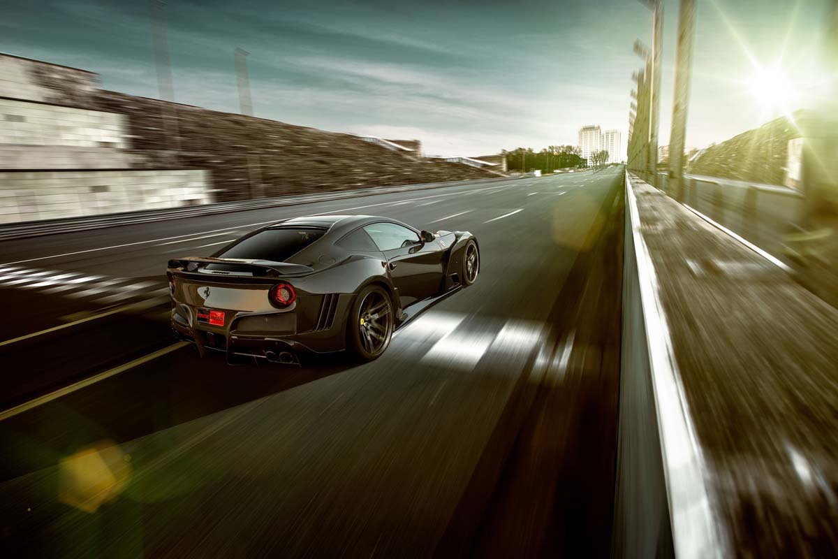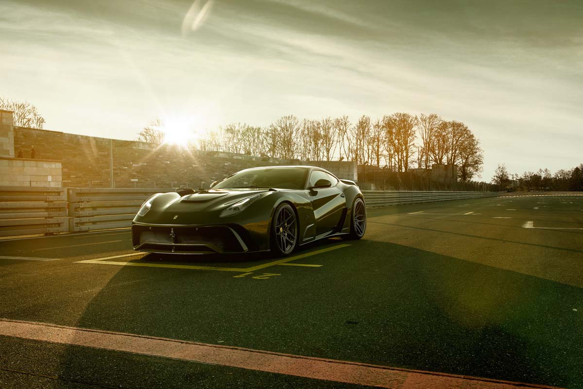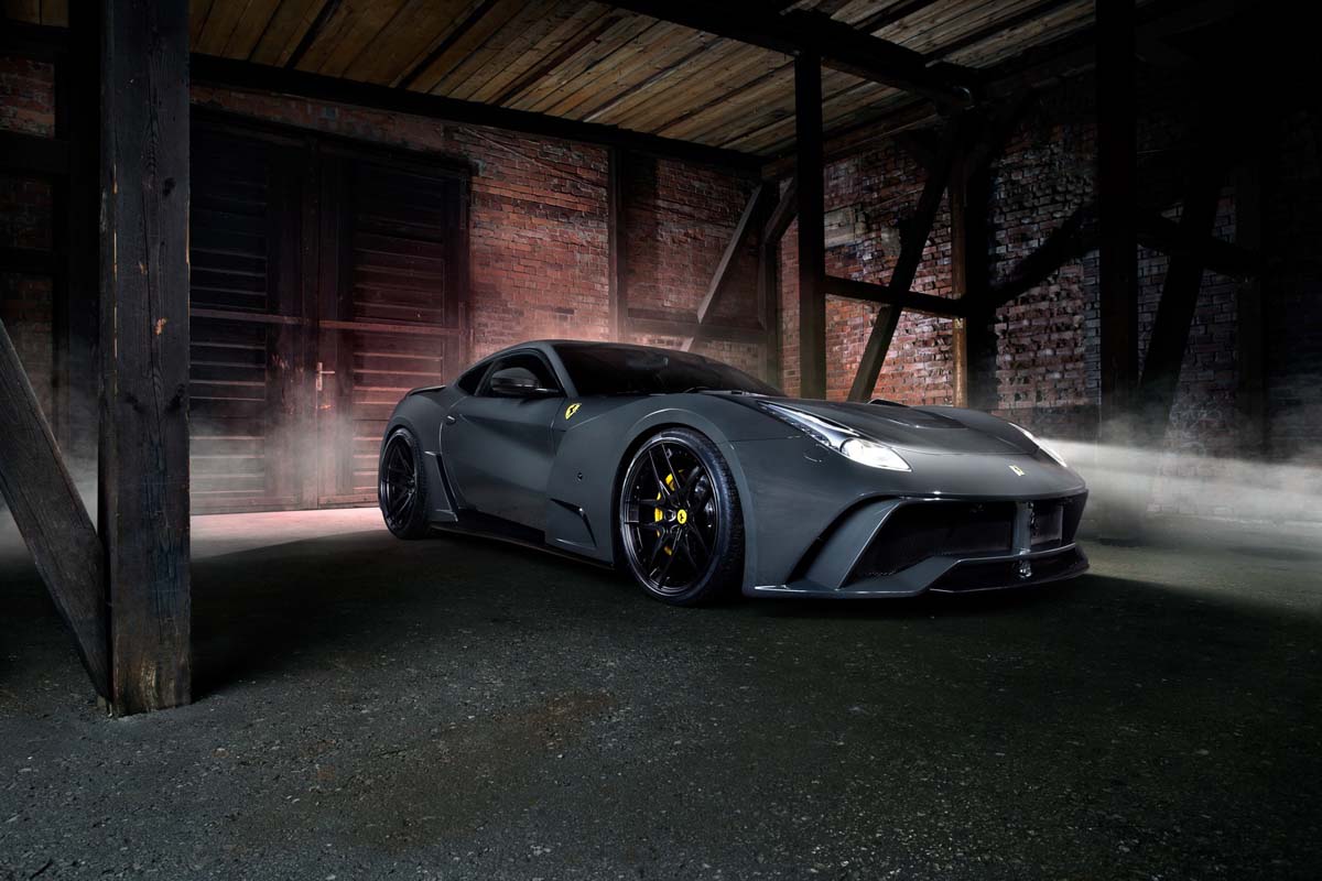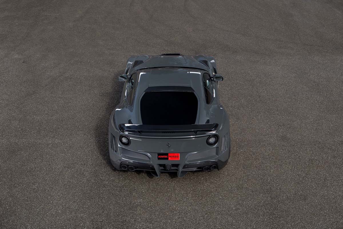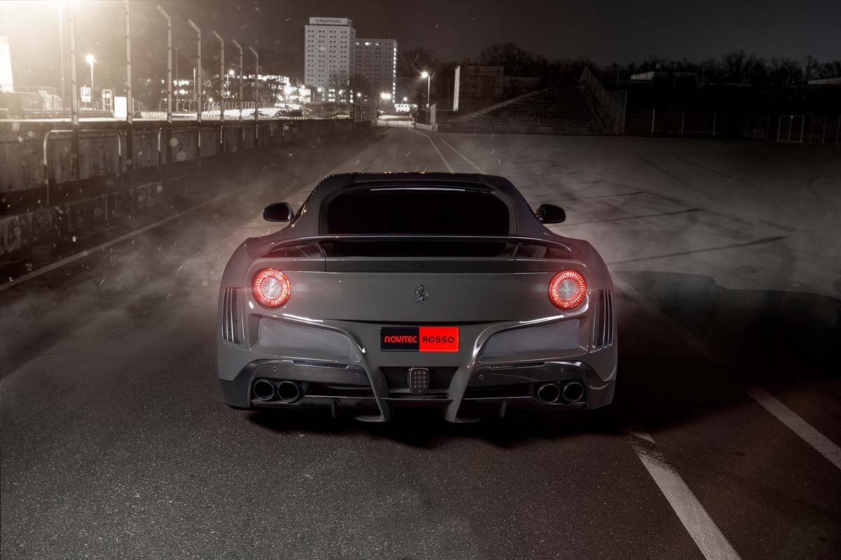 Novitec Rosso N-Largo S以Ferrari F12Berlinetta為基礎所打造而成,而且改變幅度之大。首先是全新前保桿總成,感覺上把前氣壩整個挖空,並在內部加入導風片的結構,主要可讓空氣快速導向冷卻系統與煞車系統,提高其散熱效率,同時也能產生足夠的下壓力,而引擎蓋上的散熱孔也被加大許多,可幫助引擎室熱能快速散去。接下來是Novitec Rosso N-Largo S的重點,前葉子板加寬了7cm之多,並在後方設計了導風孔,而後葉子板加寬幅度更多達14cm,在後方同樣設計了導風孔,整輛Novitec Rosso N-Largo S比競技廠車還要誇張,來到車尾,後保桿整合了五片式下分流器,加上後上擾流板與後擾流尾翼,創造出最佳空力效應。