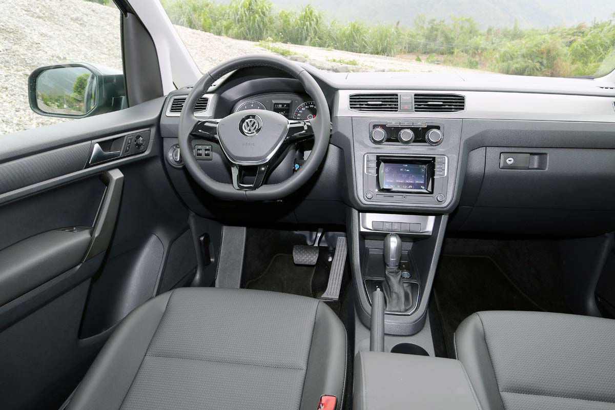 Caddy Maxi的外觀造型在以新世代家族造型風格的打造下,更顯精緻與年輕化,讓它成功擺脫以往中規中矩的商用車氛圍。內裝部分亦帶給人煥然一新的視覺感受,儘管中控檯設計不花俏,但透過大面積的銀色髮絲紋飾板與鍍鉻件的妝點,以及全車皮革座椅的襯飾,讓整個車艙精緻質感呈現完全不可同日而語。如此再加上整合5吋觸控螢幕的高級音響(可支援Aux-in/USB/藍牙裝置)、定速等配備,彰顯高級「商旅車」的企圖心不言可喻。