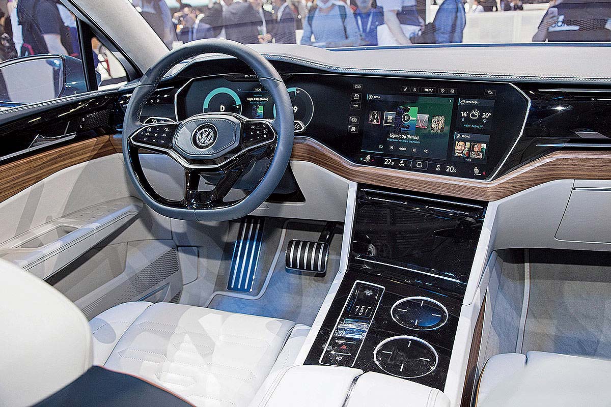VW在2016年北京車展推出全新的T-Prime Concept GTE概念車,搭載Plug-in Hybrid油電混合動力及全時四輪驅動系統,再加上全新的VW家族化扮相,也被視為下一代VW Touareg的雛型。T-Prime Concept GTE外型結合柔美及剛毅的線條,車頭水箱護罩使用內外雙層的概念,搭配串流左右頭燈的一體式LED日行燈,創造出極為動感的車頭造型。內裝T-Prime Concept GTE將中控面板與儀錶板整合成一個28吋互動式介面,中央鞍座上的排檔桿也為平面設計,並使用了許多隱藏式開關,讓整個車室看來平順圓滑。T-Prime Concept GTE使用Plug-in式的Hybrid油電混合動力系統,引擎部分搭載一具2.0升四缸渦輪汽油引擎搭配電動馬達,可榨出381hp最大綜效馬力、71.2kgm最大綜效扭力,電池部分則使用一顆14.1-kWh鋰電池,從完全沒電到完全充飽電僅需八小時(220V),若是使用專用的充電座則可於2.5小時搞定,並可支援純電行駛50km。
