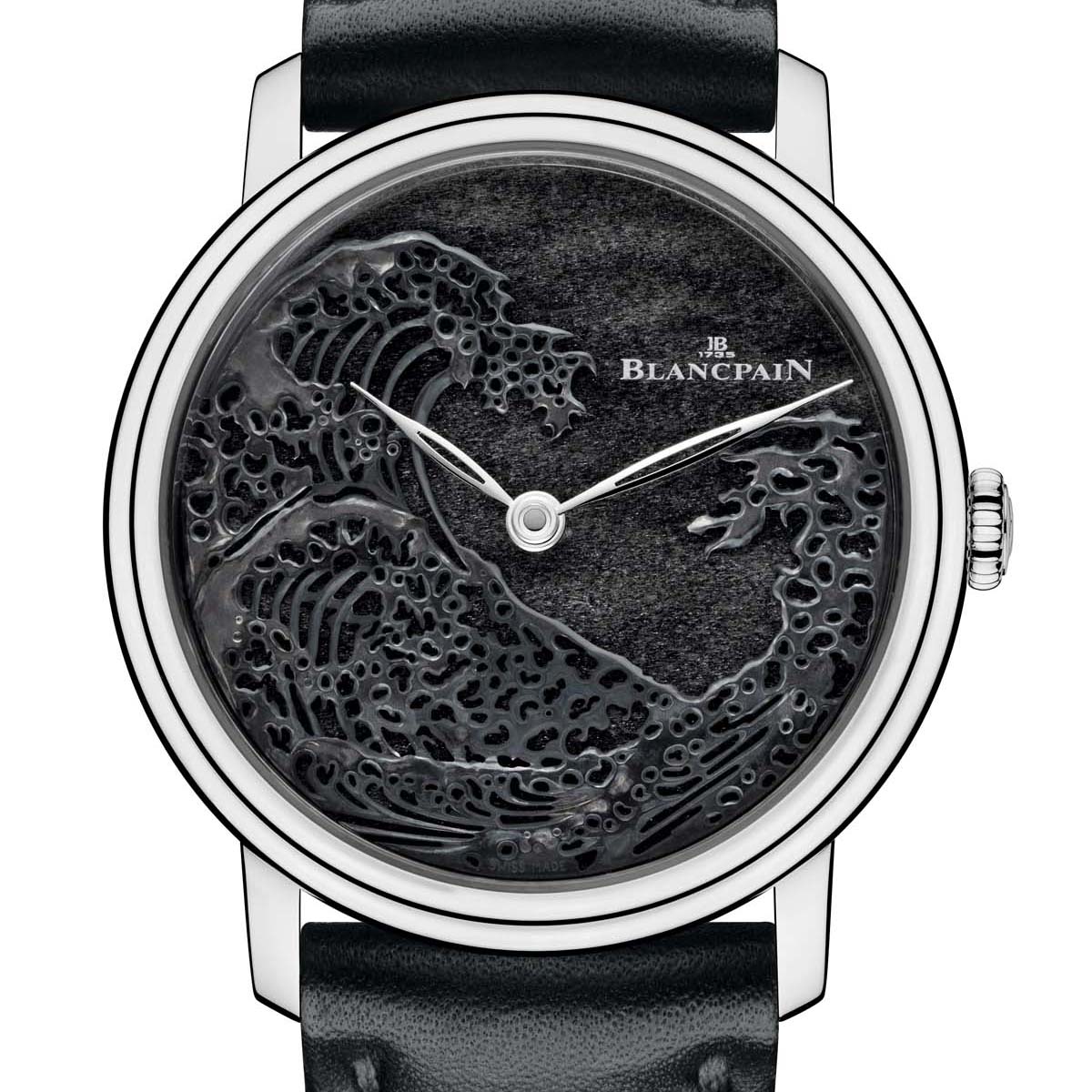 寶鉑(Blancpain)一出手,便知有沒有。繼去年發表的赤銅雕繪腕錶受到市場高度關注後,今年更將日本的赤銅雕繪(Sakudo)技藝發揮得淋漓盡致。錶盤上完美重現日本浮世繪大師葛飾北齋(Hokusai)著名作品、《富嶽三十六景》之一的〈神奈川沖浪裏〉。以日本技藝搭配日本知名藝術品,可說是極為匹配的設計。同時錶殼與面盤也以銀曜石與鉑金製成,並搭載自製手上鍊機芯,備有8天長動力儲存,最酷的是,它們還接受特殊訂制。