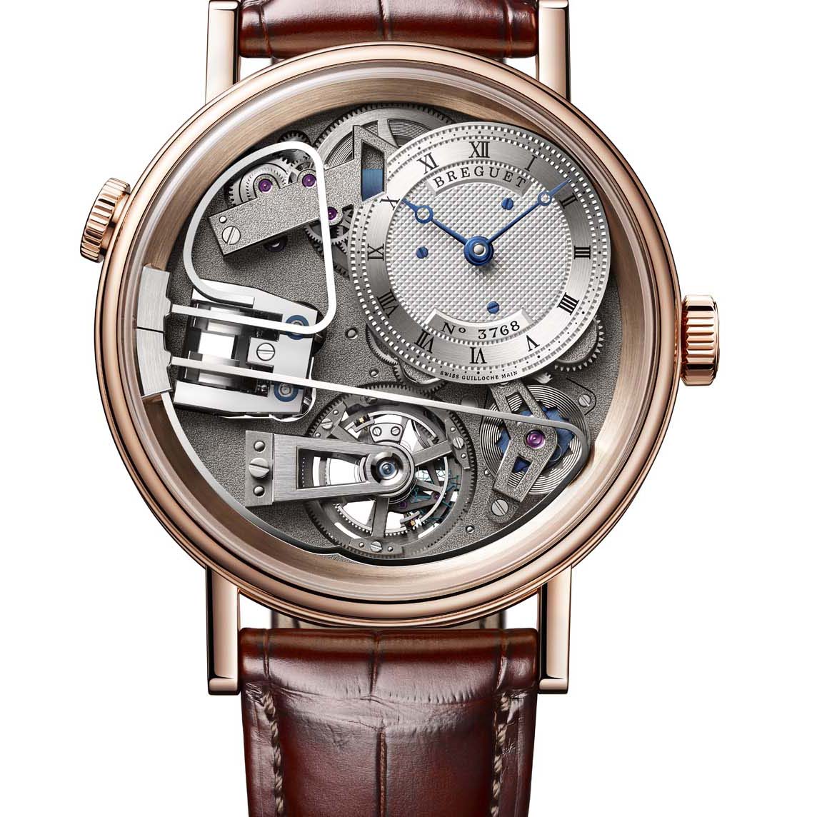 | 自製565DR 自動上鏈機芯/三問報時功能/ 陀飛輪裝置/80小時動力儲存/12點鐘為動力顯示窗口/18K玫瑰金錶殼/錶徑44mm/鍍銀18K金錶盤/建議售價NT$14,862,000 |