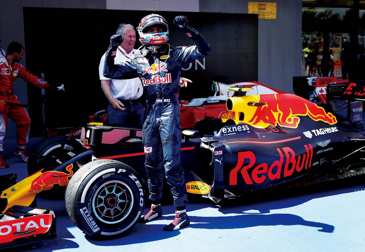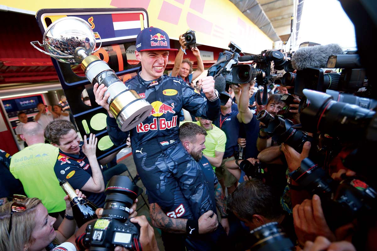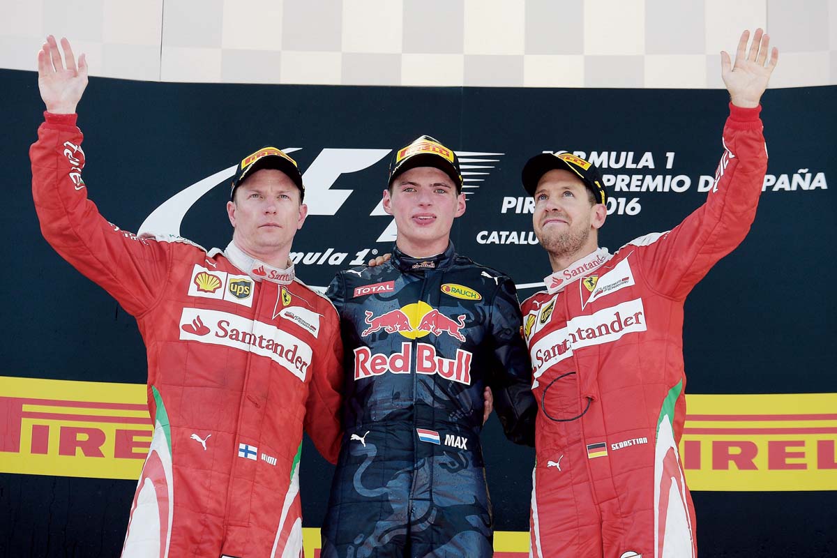 現年36歲的Raikkonen和18歲的Verstappen正好是現役F1車手最年長和最年輕者──前者還表示曾和他的父親比賽過,因此感覺有點奇怪──但Verstappen卻能頂住這位年紀大他整整一倍的前世界冠軍的壓力、完全不讓他越雷池一步──我們已經在不少曾寫下F1最年輕冠軍紀錄的車手身上看過這種表現──終場他以0.616秒的差距拿下個人F1首勝,這一勝,刷新了許多紀錄:不但是F1史上首位荷蘭車手獲勝,也以18歲又228天的年齡刷新Vettel於2008年以21歲又73天寫下的F1車手最年輕優勝紀錄。