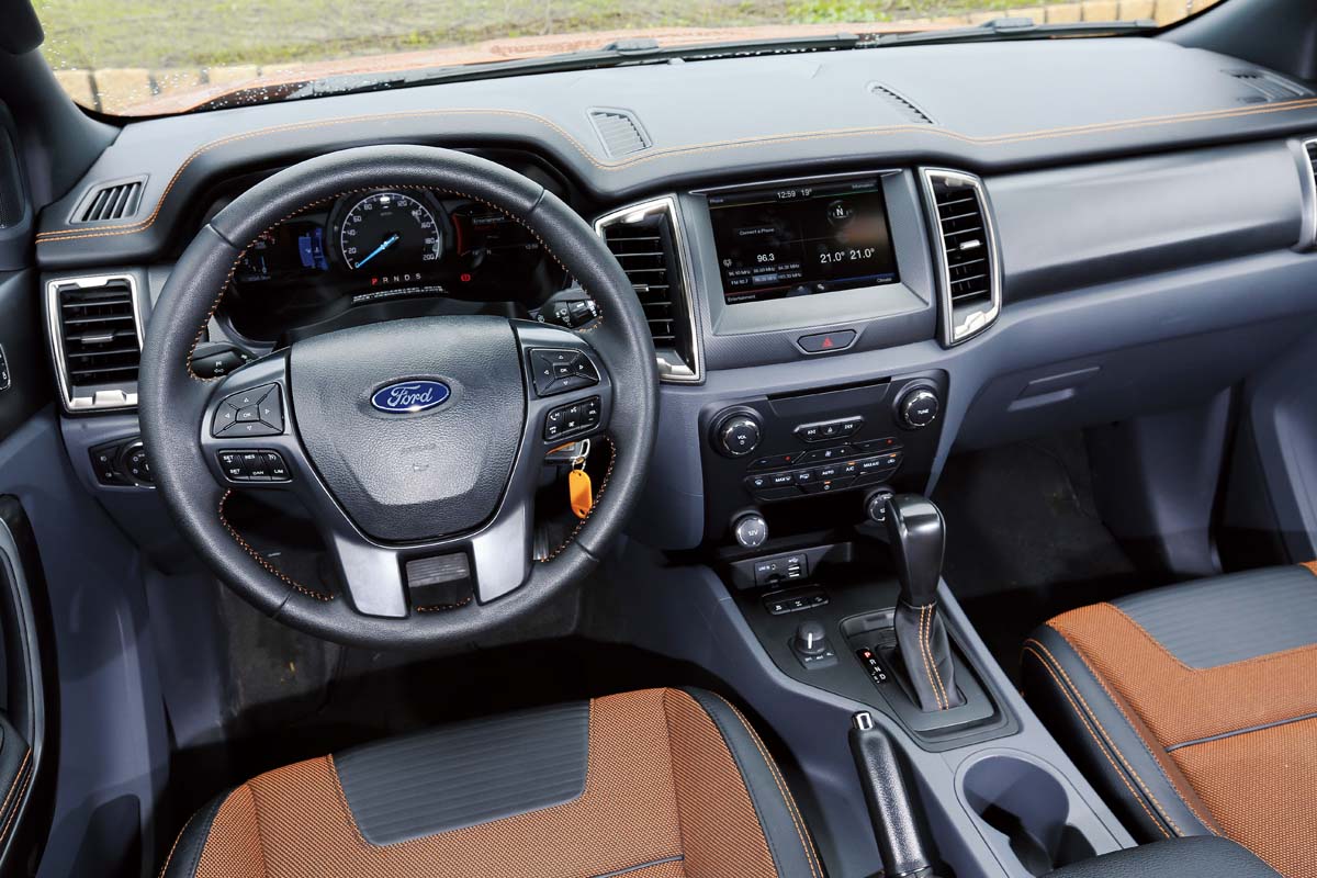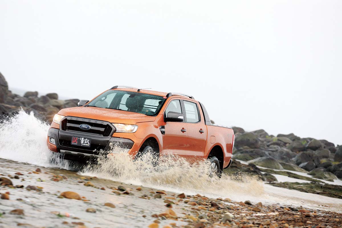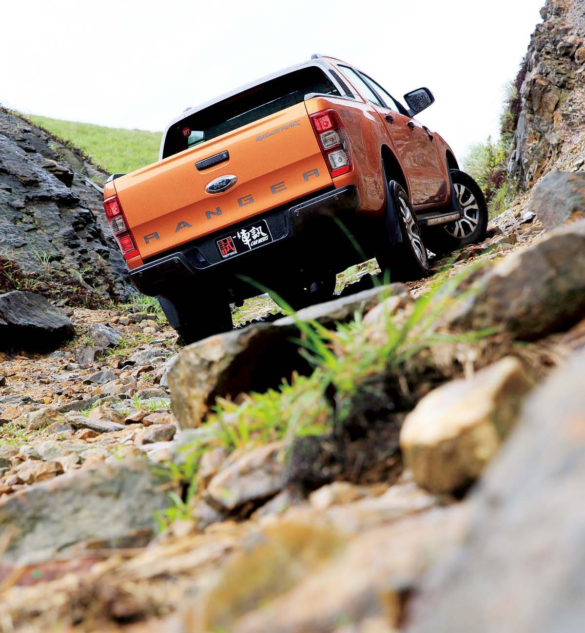 儘管Ranger外觀朝時尚精緻化看齊,其實骨子裡仍是充滿男子氣概的硬漢,雖然國內未導入2.2升柴油與2.5升汽油動力規格,但與以往相同的3.2升柴油引擎,較其他引擎更出色的扭力似乎也更符合車型定位。Ranger除了具備貨斗與3500公斤拖曳能力,方便乘載物品外,800mm涉水深度、28度進場角與25度離場角也提供絕佳的越野能力,如此出色能力讓試駕Ranger哪有不去越野的道理。