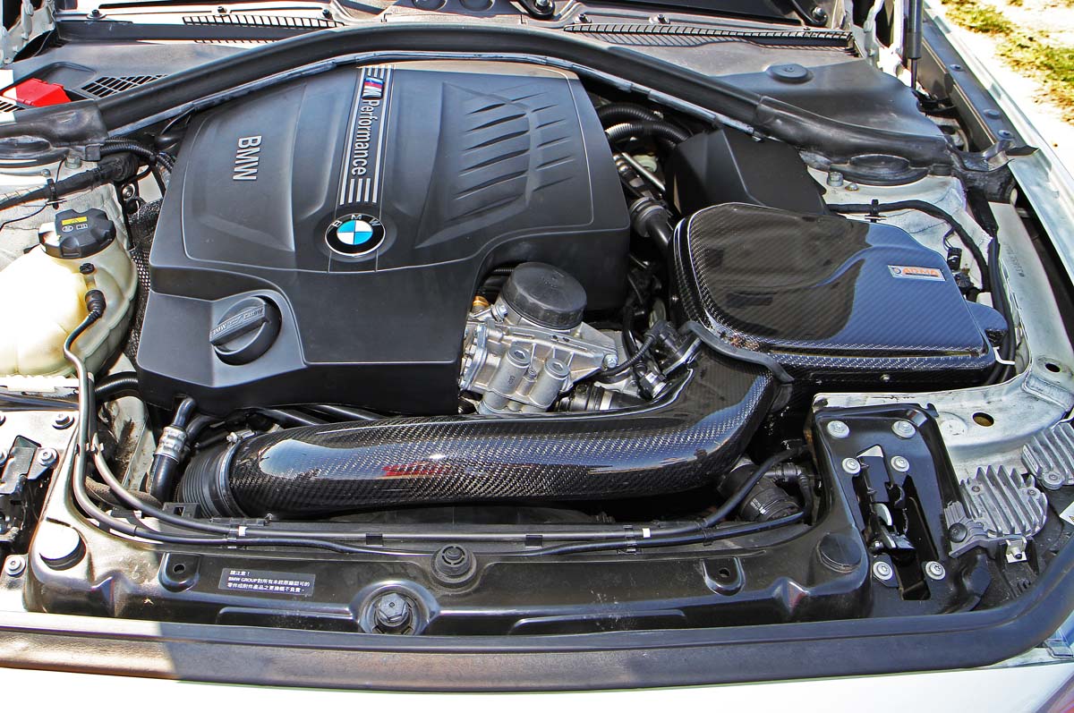 這部由BMS JB4派出接受筆者採訪的BMW M235i車款,所搭載的引擎為排氣量達2979c.c.的直列六缸引擎,搭配單渦輪增壓系統,原廠公布可輸出326hp/5800rpm、45.9kgm/1300rpm的最大動力表現,這顆代號為N55B30的引擎,早上E90/E92車系上就以出現,是用來取代N54B30雙渦輪增壓引擎之用,在N55B30採用Dual-Vanos可變汽門正時系統與省略節氣門機構後,使得ECU對進排氣門的控制更為靈活,對燃燒效率的控制亦較為精準,讓這顆引擎的油耗表現,比N54B30來得好上一些,不過也由於ECU控制系統更為複雜下,改裝潛力比N54B30略遜一些。